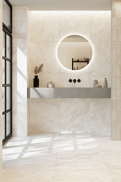 Главный ценз новинки в ее визуальной красоте и совершенстве поверхности. Насыщенный блеск и естественные потертости создают эффект глубины и объема. При определенной динамике освещения, материал выглядит как атлас или шелк. В серии превалирует белая тональность, что идеально для формирования безупречного нейтрального фона, но с характером. Ведь имитация камня выглядит чрезвычайно убедительно, не теряя своей убедительности при приближении. Правда имеются в коллекции и бежевые, и серые оттенки, например Mylos Bone 60x120 или Mylos Grey: