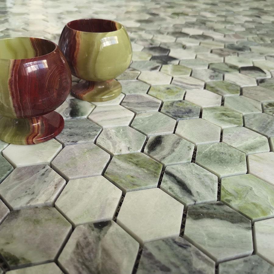 Плитка Caramelle & LeeDo Pietrine Hexagonal Onice Verde Oliva Pol Hex — это высококачественная мозаика, которая станет отличным решением для создания стильного и современного интерьера.
