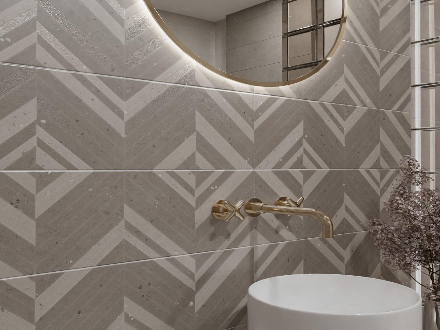 Плитка имеет геометрический дизайн и матовую поверхность, что придаёт ей современный и лаконичный вид. Она идеально подходит для стилей лофт и других современных интерьеров. Прямоугольная форма плитки позволяет создавать интересные композиции на стенах.