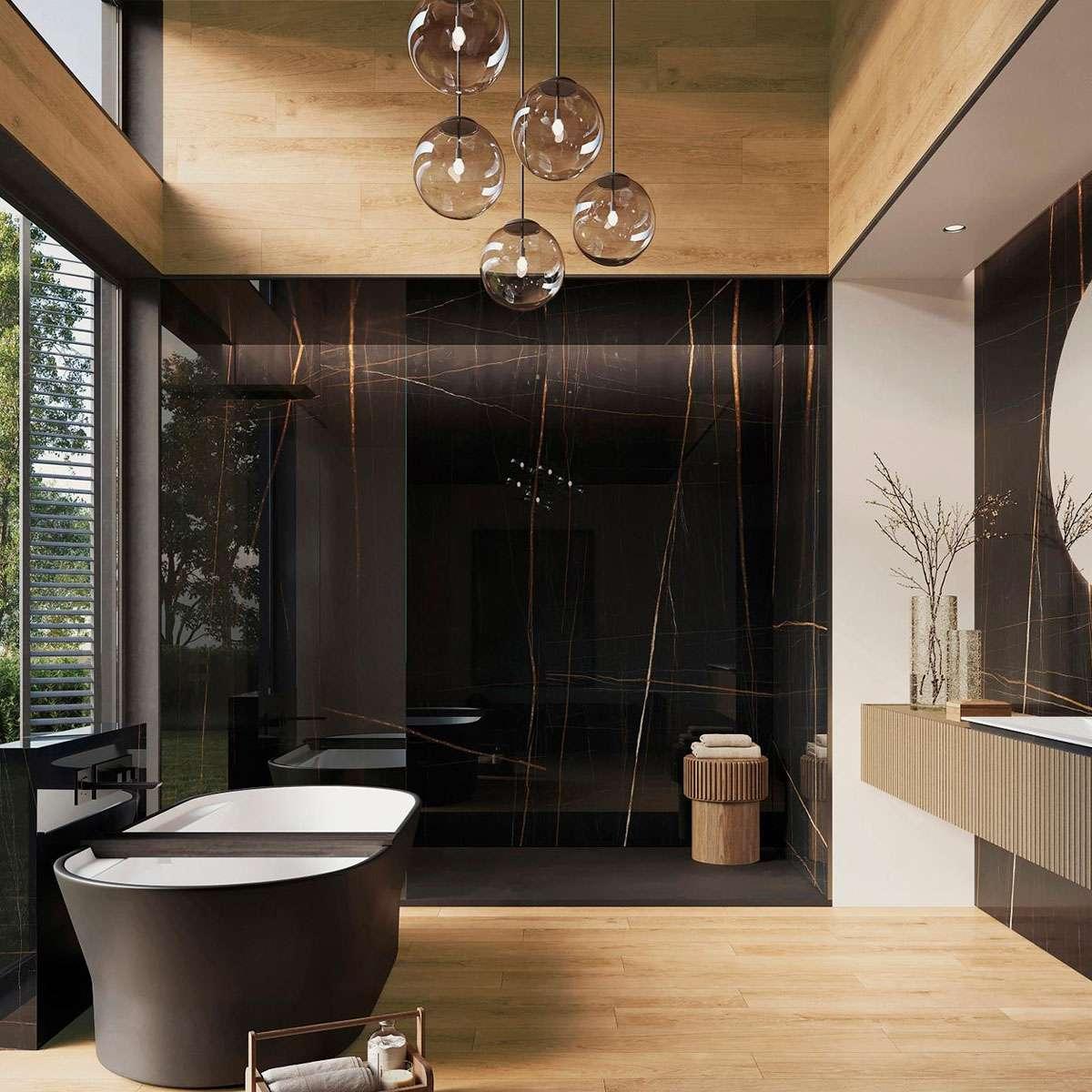 Коллекция Nylo от производителя Porcelanosa (Испания) отличается своей уникальностью и элегантностью. Керамогранит под мрамор в чёрном цвете придаст вашему интерьеру современный и стильный вид.