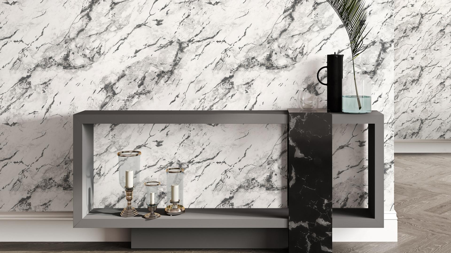 Дизайн обоев имитирует мрамор, создавая эффектный и современный вид. Серый цвет обоев гармонично впишется в любой интерьер и станет его изысканным дополнением.