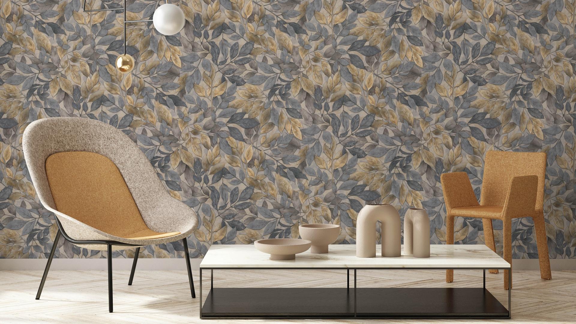 Обои коллекции Adele имеют артикул AR11091-05 и выполнены в сером цвете с изображением листьев. Они легко клеятся и не требуют особого ухода, так как являются моющимися.