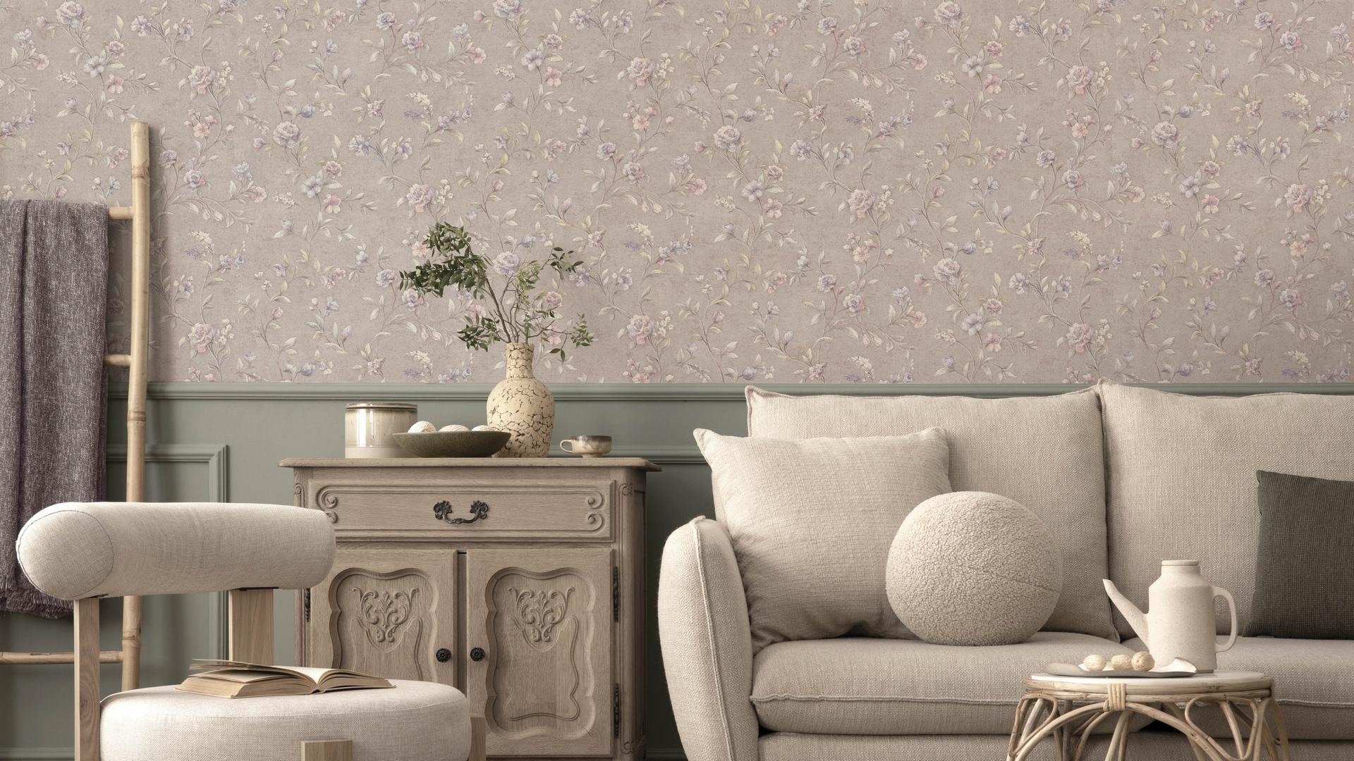 Обои коллекции Adele от производителя Артекс имеют лиловый оттенок и украшены цветочным принтом. Они выполнены на флизелиновой основе, что обеспечивает лёгкость нанесения и долговечность покрытия. Виниловый слой делает обои моющимися, что упрощает уход за ними.