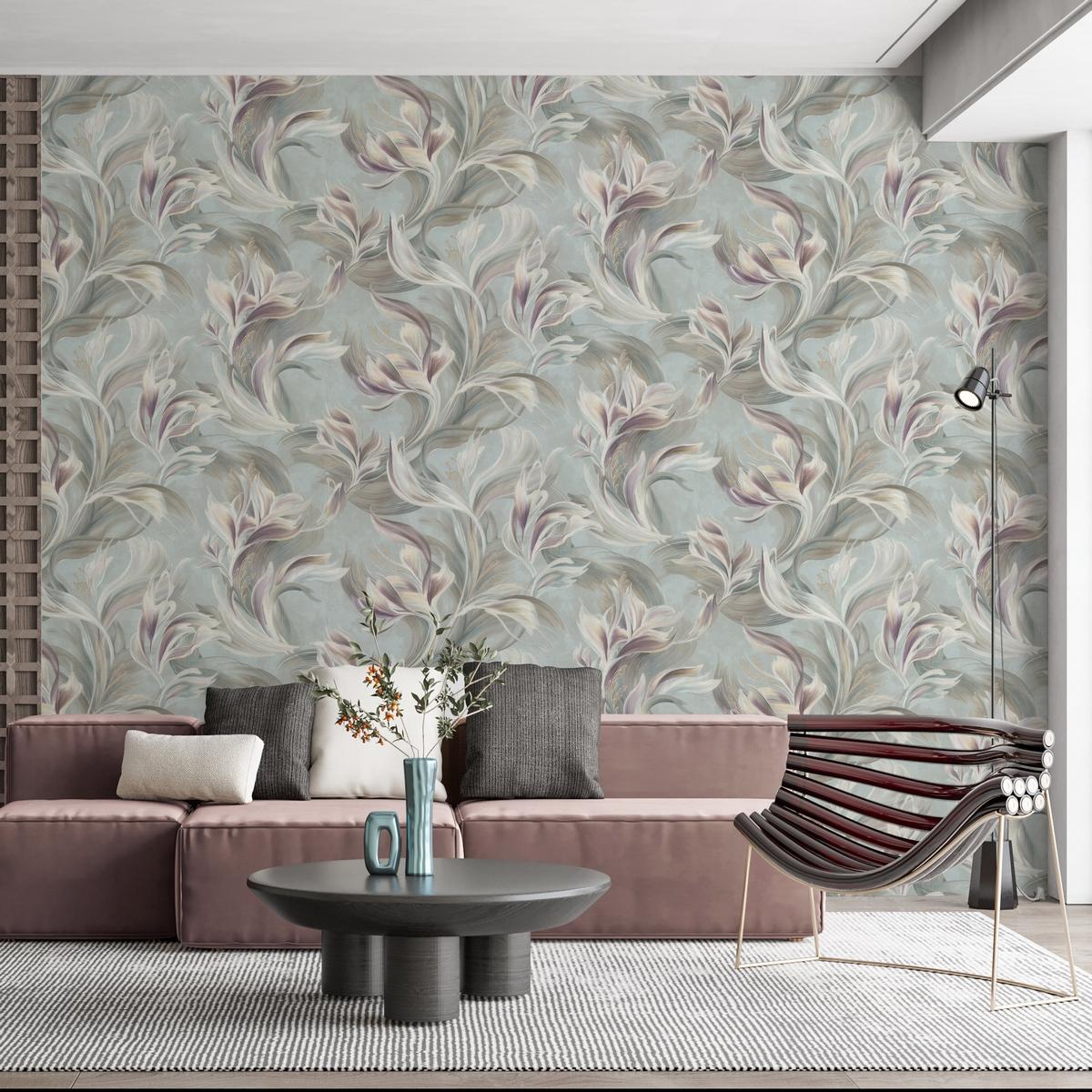 Дизайн обоев сочетает в себе нежные бирюзовые оттенки и изысканные цветочные мотивы, создавая атмосферу свежести и уюта в вашем доме.