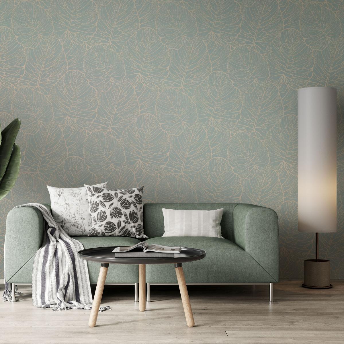 Коллекция Forest представляет собой сочетание современного дизайна и природных мотивов. Обои украшены изящными листьями в бирюзовом цвете, что придаст вашему интерьеру свежесть и лёгкость.