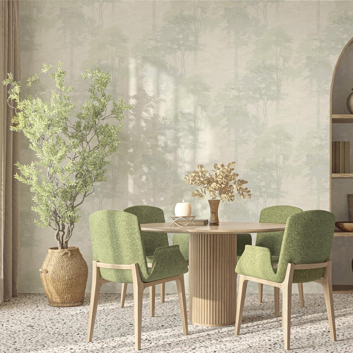 Дизайн обоев вдохновлён природой: на светлом фоне изображены деревья в бирюзовых тонах. Этот свежий и яркий рисунок добавит в ваш дом атмосферу уюта и гармонии.