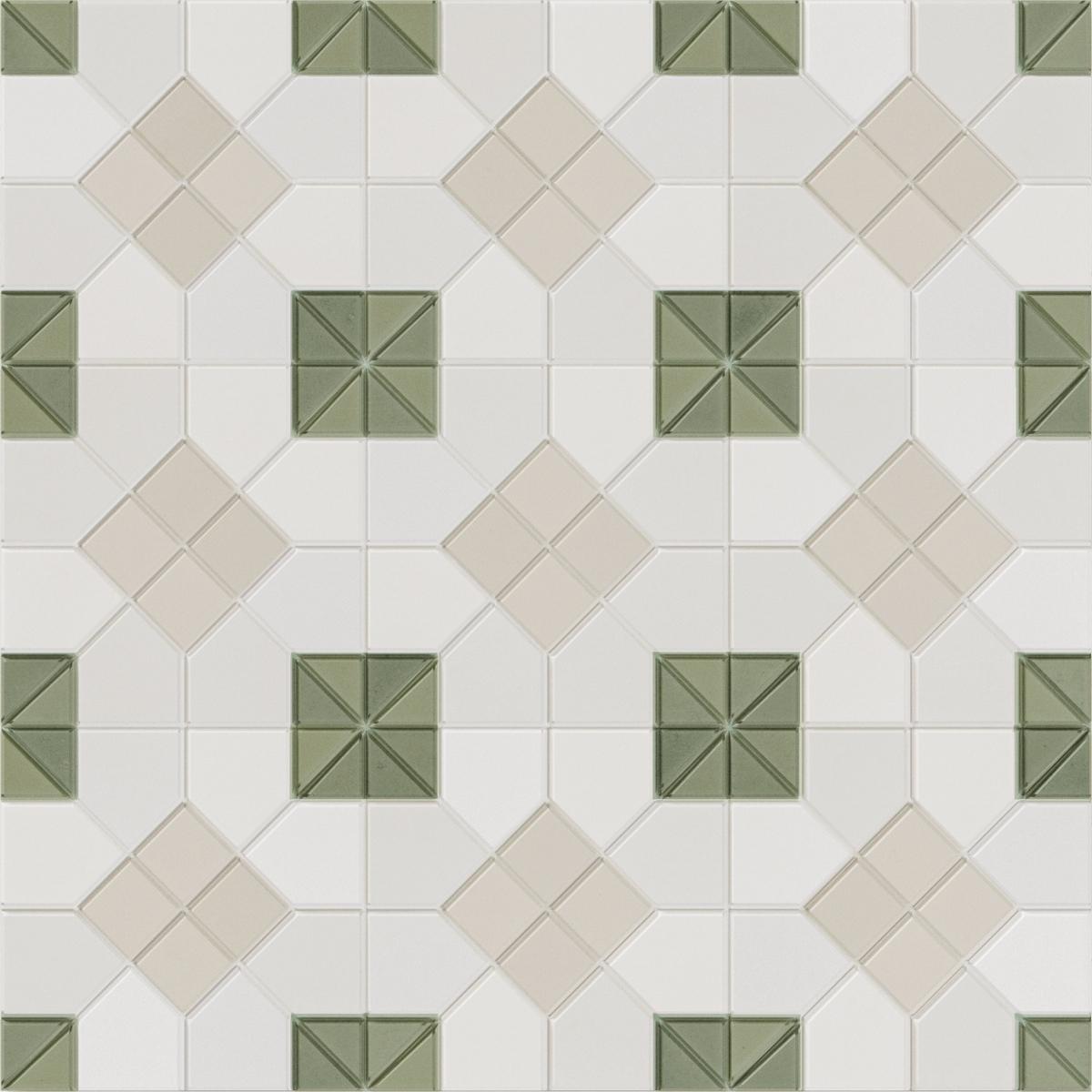 Благодаря своему оливковому цвету и геометрическому узору, керамогранит Wow Tesserae Suit Moss 28x28 добавит в ваш интерьер нотку элегантности и современности.