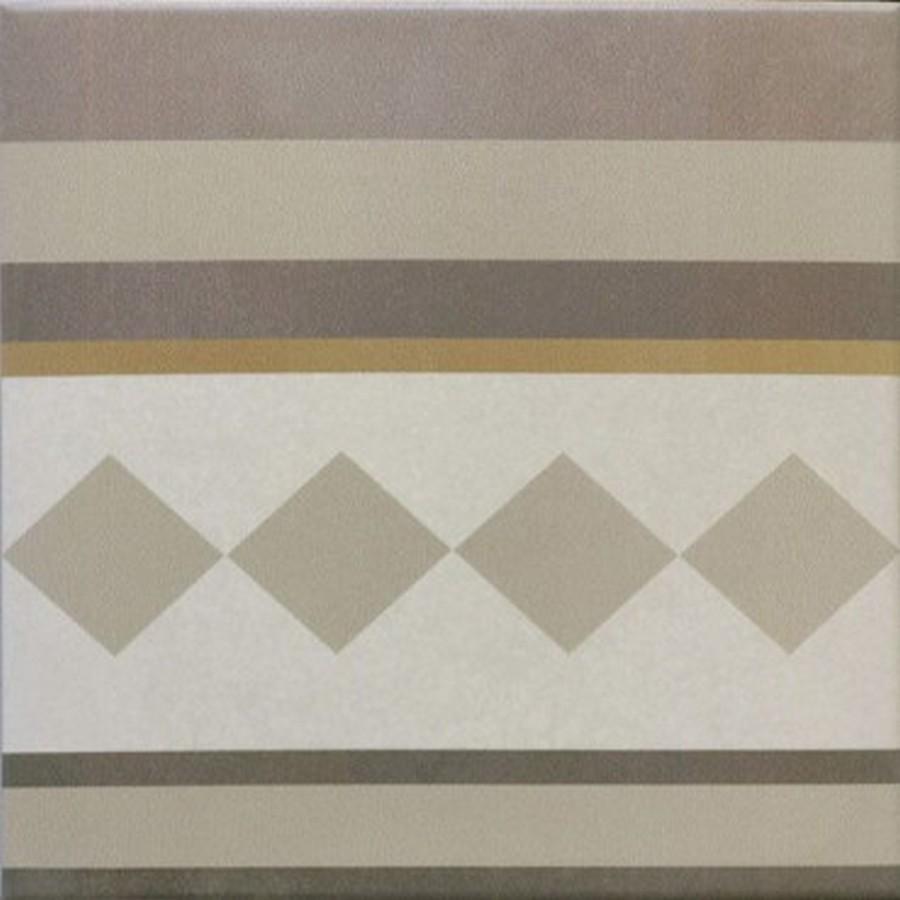 Плитка имеет размер 20x20 см, что делает её удобной в использовании и позволяет создавать гармоничные композиции. Бежевый цвет с геометрическим узором придаёт интерьеру теплоту и уют.