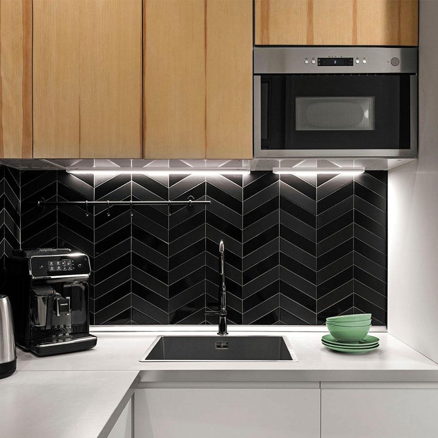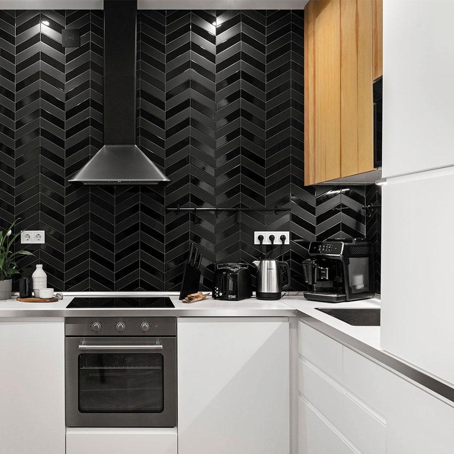 Коллекция Chevron Wall от Equipe — это не только практичность, но и возможность создать уникальный и запоминающийся интерьер. Чёрный цвет плитки добавит глубины и насыщенности вашему пространству, а чёткий геометрический рисунок станет ярким акцентом.