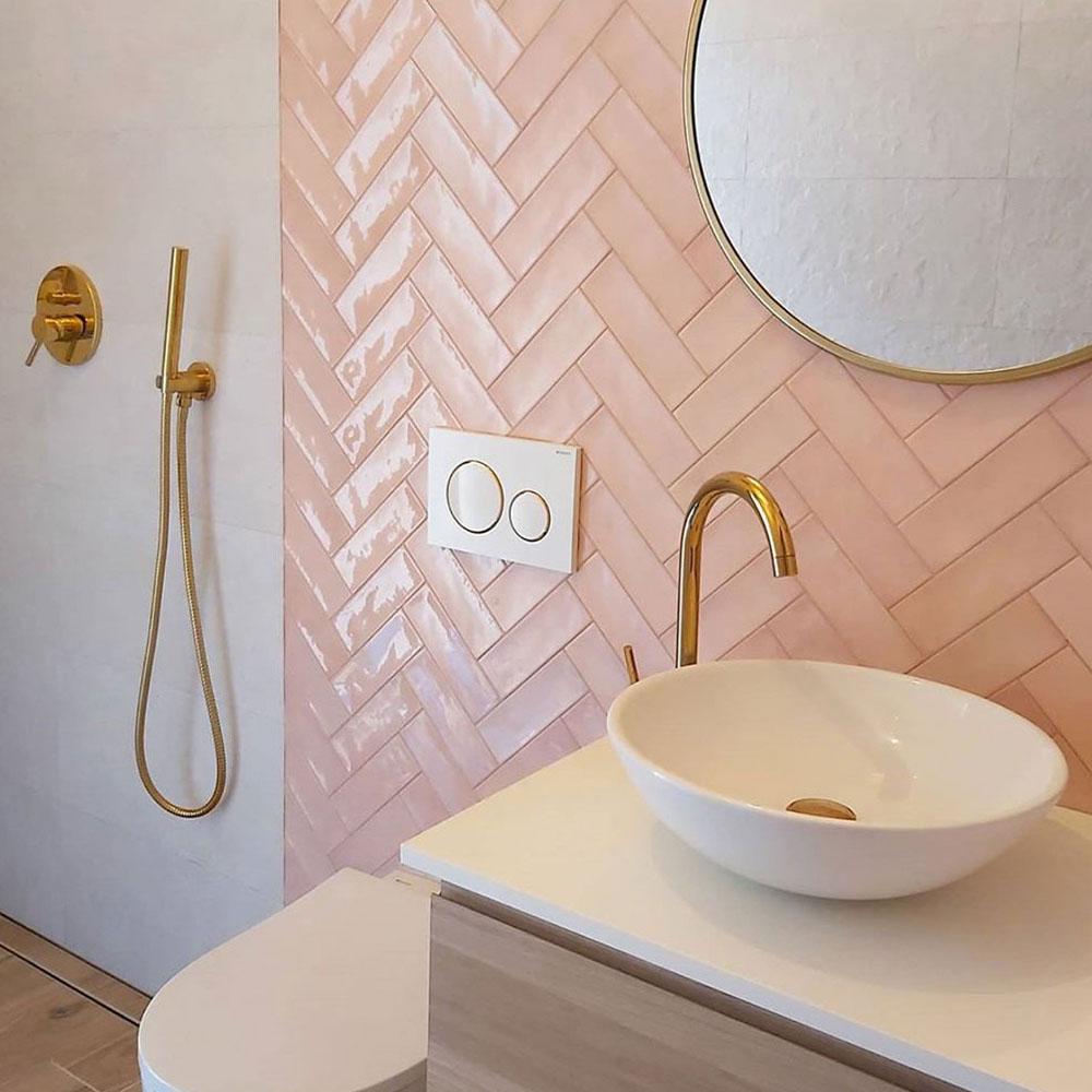 Размер плитки 6.5x20 см делает её удобной в монтаже и позволяет создавать интересные композиции. Розовый цвет с золотистым отливом добавит тепла и уюта в ваш интерьер.