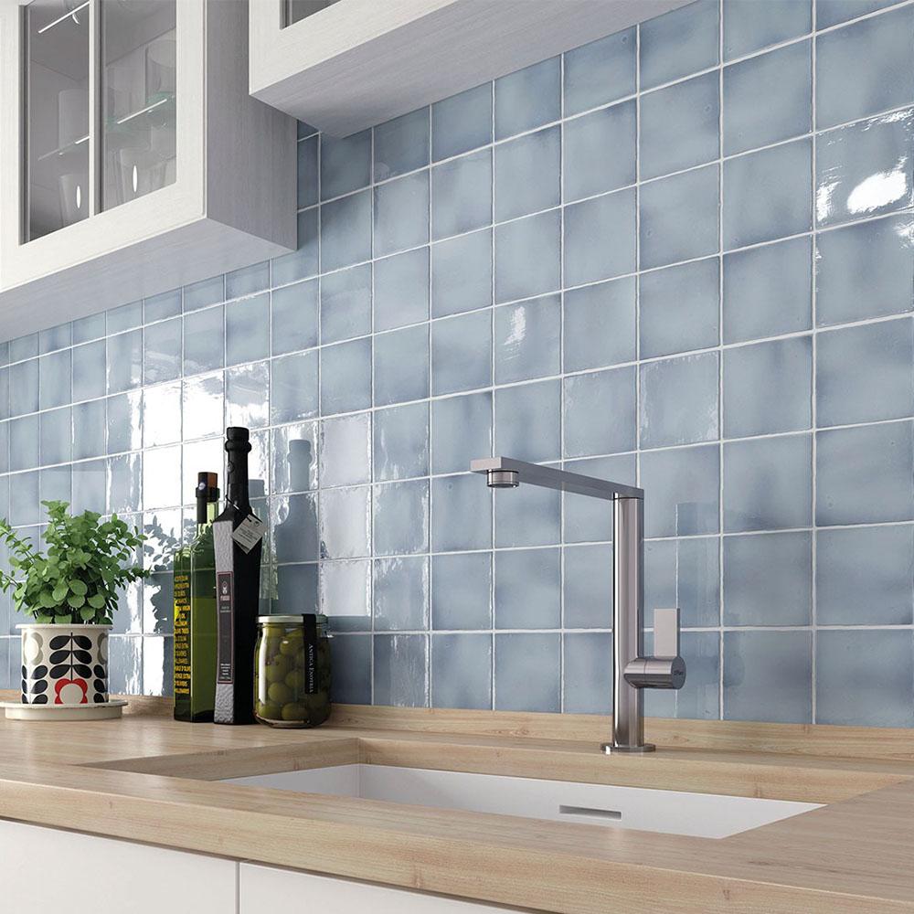 Плитка имеет размер 10x10 см, что делает её удобной для использования в различных дизайнерских решениях. Глянцевая поверхность придаёт плитке особый блеск и создаёт ощущение глубины цвета. Однотонный голубой оттенок плитки легко впишется в интерьер в стиле бохо, добавляя в пространство нотки свежести и элегантности.