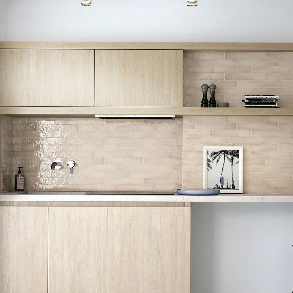 Плитка имеет прямоугольную форму и глянцевый блеск, который придаёт поверхности изысканный вид. Однотонный бежевый цвет делает её универсальным решением для оформления стен.