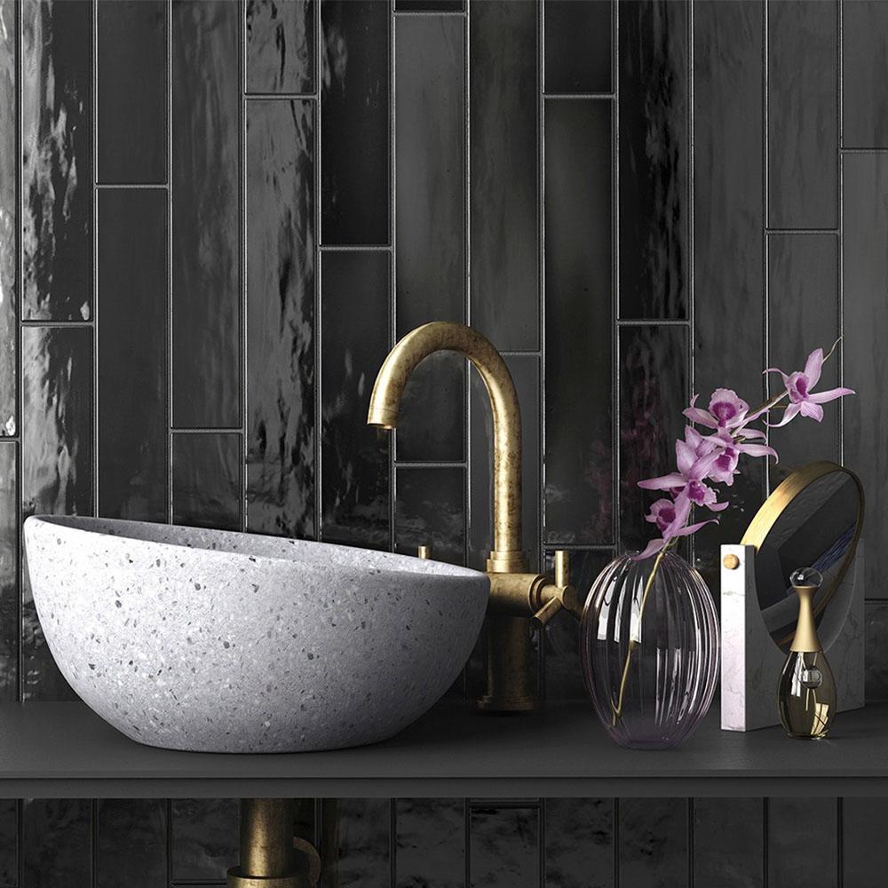 Глянцевая поверхность плитки придаёт помещению особый шарм и элегантность. Однотонный чёрный цвет делает её универсальным решением для создания атмосферы в стиле бохо. Прямоугольная форма плитки обеспечивает лёгкость монтажа и гармоничное сочетание с другими элементами интерьера.