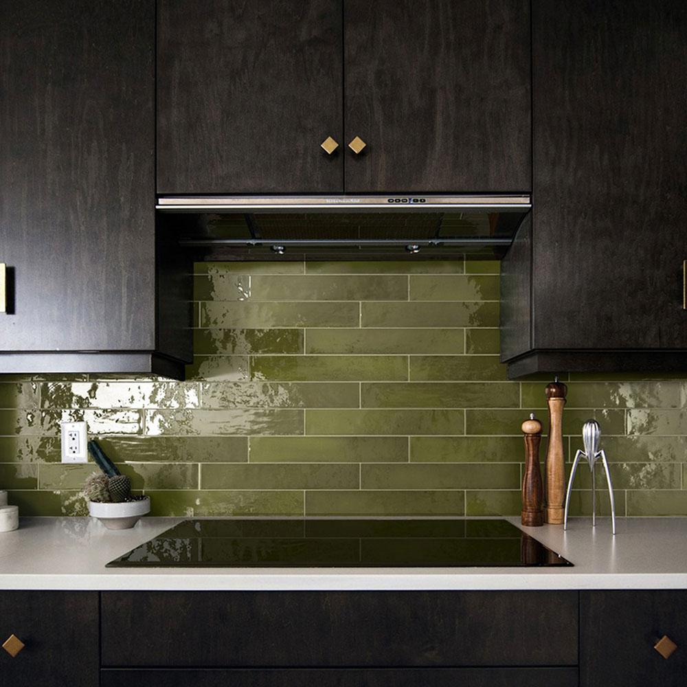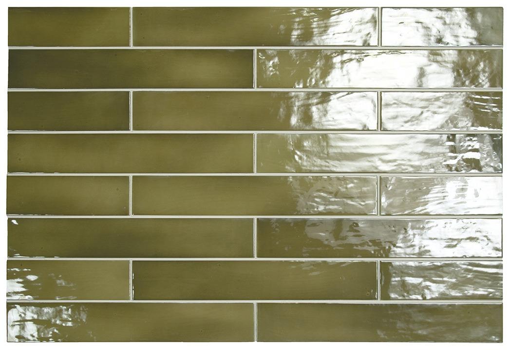 Плитка имеет размеры 6,5 x 40 см, что делает её мелкоформатной и удобной для монтажа. Прямоугольная форма и глянцевая поверхность придают плитке элегантный вид. Оливковый цвет делает плитку однотонной, что позволяет легко сочетать её с другими элементами интерьера.