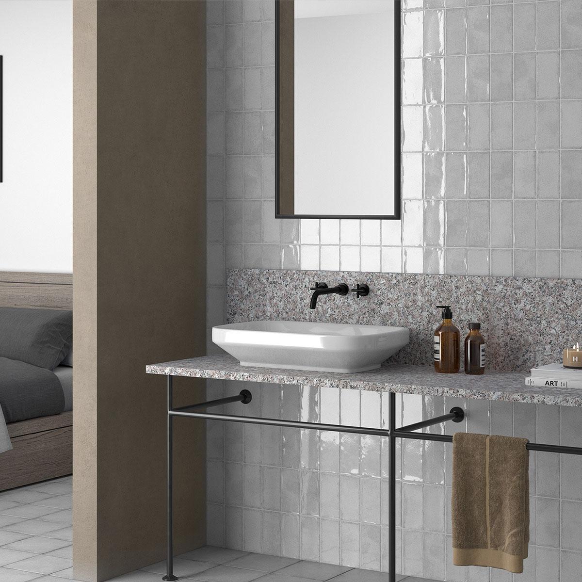 Плитка размером 7.5x15 станет отличным решением для отделки стен. Однотонный серый цвет в стиле рустик придаст вашему интерьеру современный и уютный вид.
