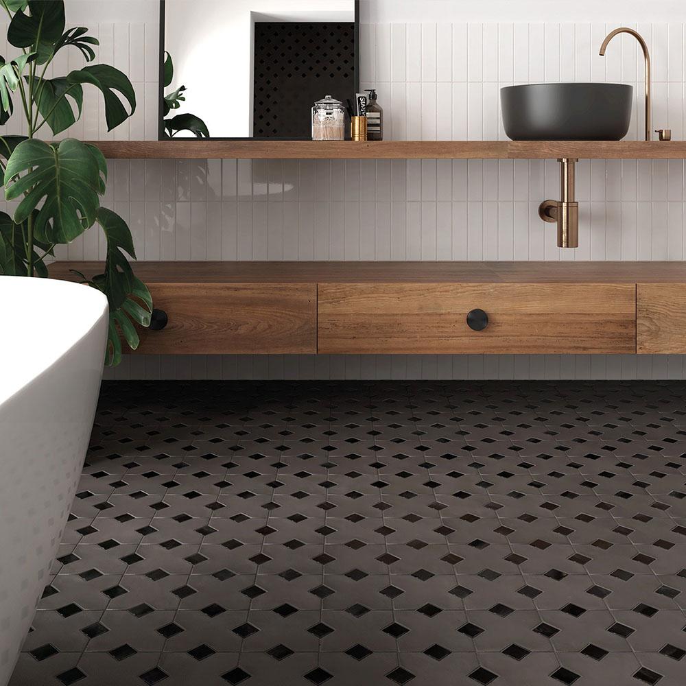 Коллекция Kasbah отличается элегантным дизайном, а чёрный цвет плитки придаёт помещению изысканный и стильный вид. Мелкоформатный керамогранит с глянцевой поверхностью не только красив, но и практичен в использовании.
