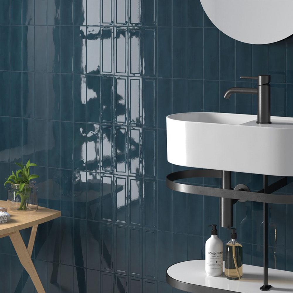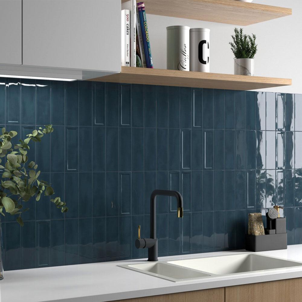 Монохромный синий цвет плитки создаёт гармоничное и спокойное пространство. Прямоугольная форма делает плитку универсальной для различных дизайнерских решений.