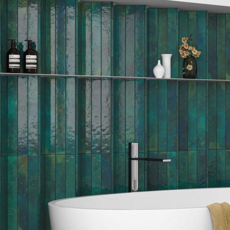 Плитка имеет размер 5x40 см, что делает её мелкоформатной и удобной для использования в различных дизайнерских решениях. Прямоугольная форма и глянцевая поверхность придают плитке современный вид. Однотонный бирюзовый цвет плитки позволяет легко сочетать её с другими элементами интерьера и создавать гармоничные композиции.