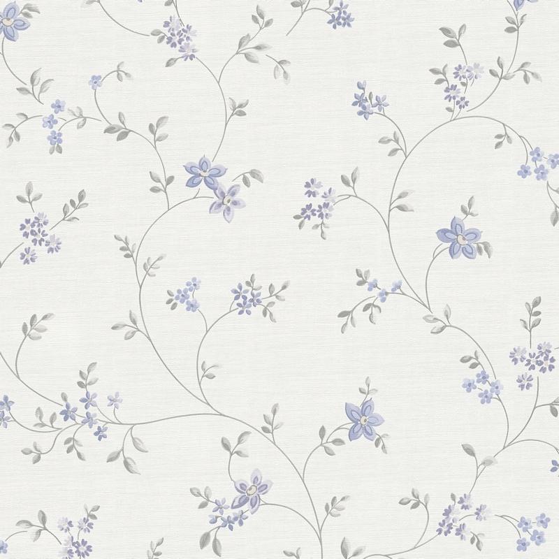 Обои украшены флористическим принтом в голубых тонах, который добавит свежести и уюта в ваш дом.