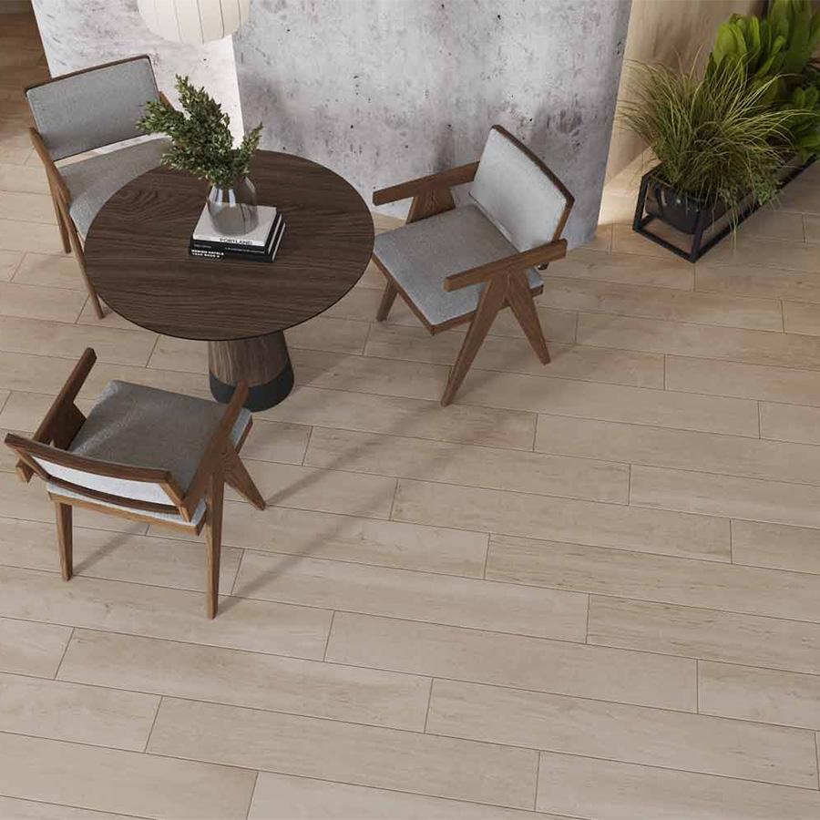 Этот керамогранит имеет матовую поверхность и цвет, напоминающий бежевый оттенок натурального дерева. Благодаря своим размерам 19,4 x 120 см, плитка легко укладывается и позволяет быстро завершить ремонтные работы.
