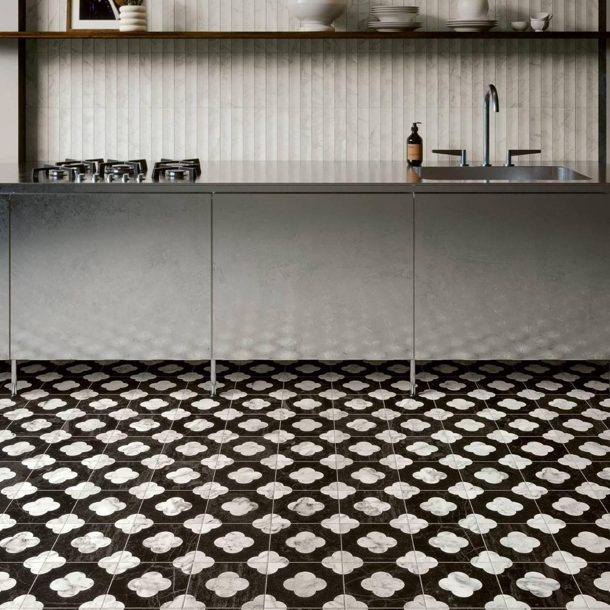 Керамогранит 41Zero42 Dandy Pin Black_White 18.6x18.6 — это мелкоформатная матовая плитка, которая станет отличным решением для вашего пола. Она выполнена в современном стиле с геометрическим декором, что придаёт ей уникальный и стильный вид.