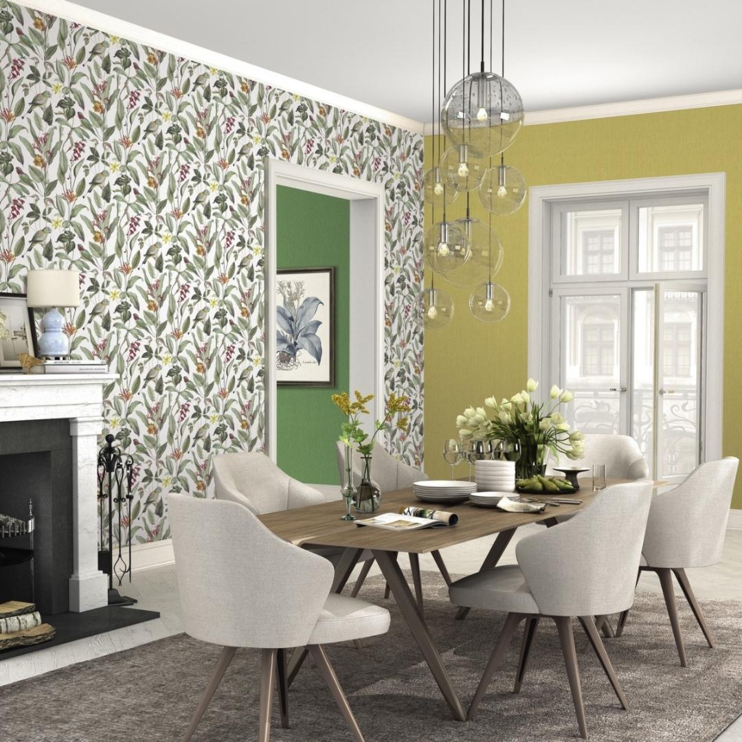 Обои имеют однотонный лимонный цвет, который прекрасно подойдёт для создания уютного и светлого интерьера. Благодаря флизелиновой основе обои легко клеятся и не растягиваются при нанесении клея.