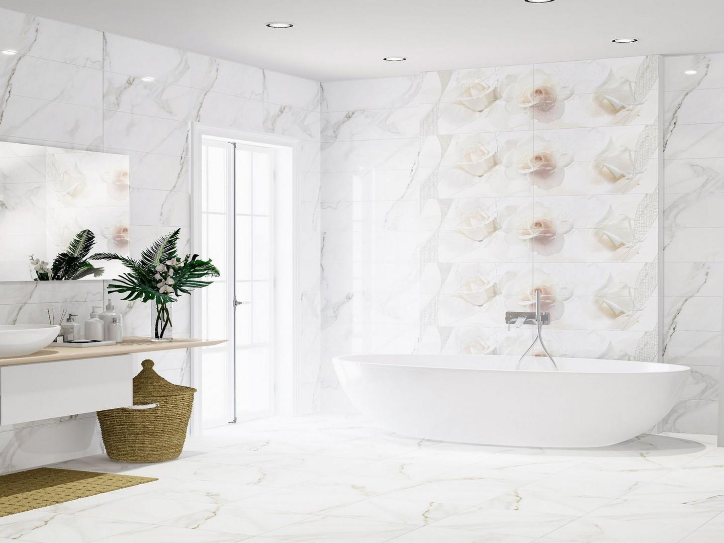 Эта плитка станет отличным выбором для создания элегантного интерьера. Она прекрасно подойдёт для любого помещения, будь то гостиная, прихожая или ванная комната. Благодаря белому цвету и мраморному рисунку плитка добавит изысканности и благородства в ваш дом.