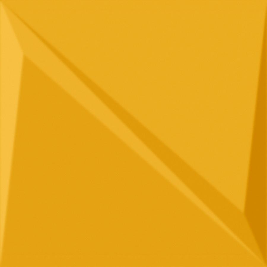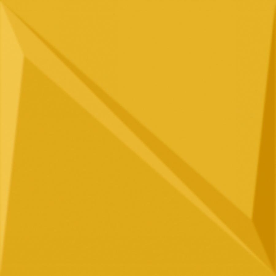 Плитка имеет геометрический узор жёлтого цвета, который станет ярким акцентом в любом помещении. Она изготовлена из высококачественной керамики, что обеспечивает её прочность и долговечность.