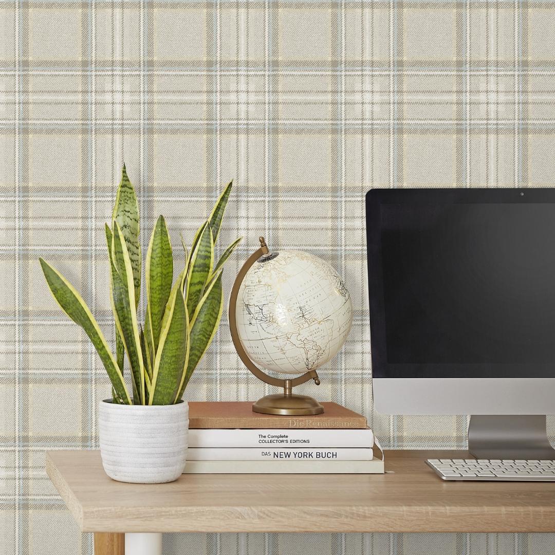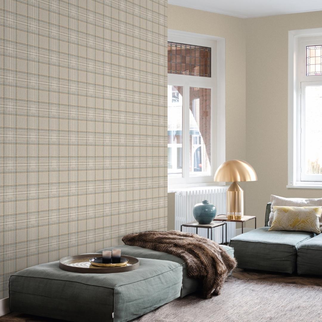 Дизайн обоев представляет собой модный современный рисунок в клетку в бежевых тонах. Этот нейтральный оттенок гармонично впишется в любой интерьер, создавая уютную и комфортную атмосферу.