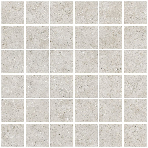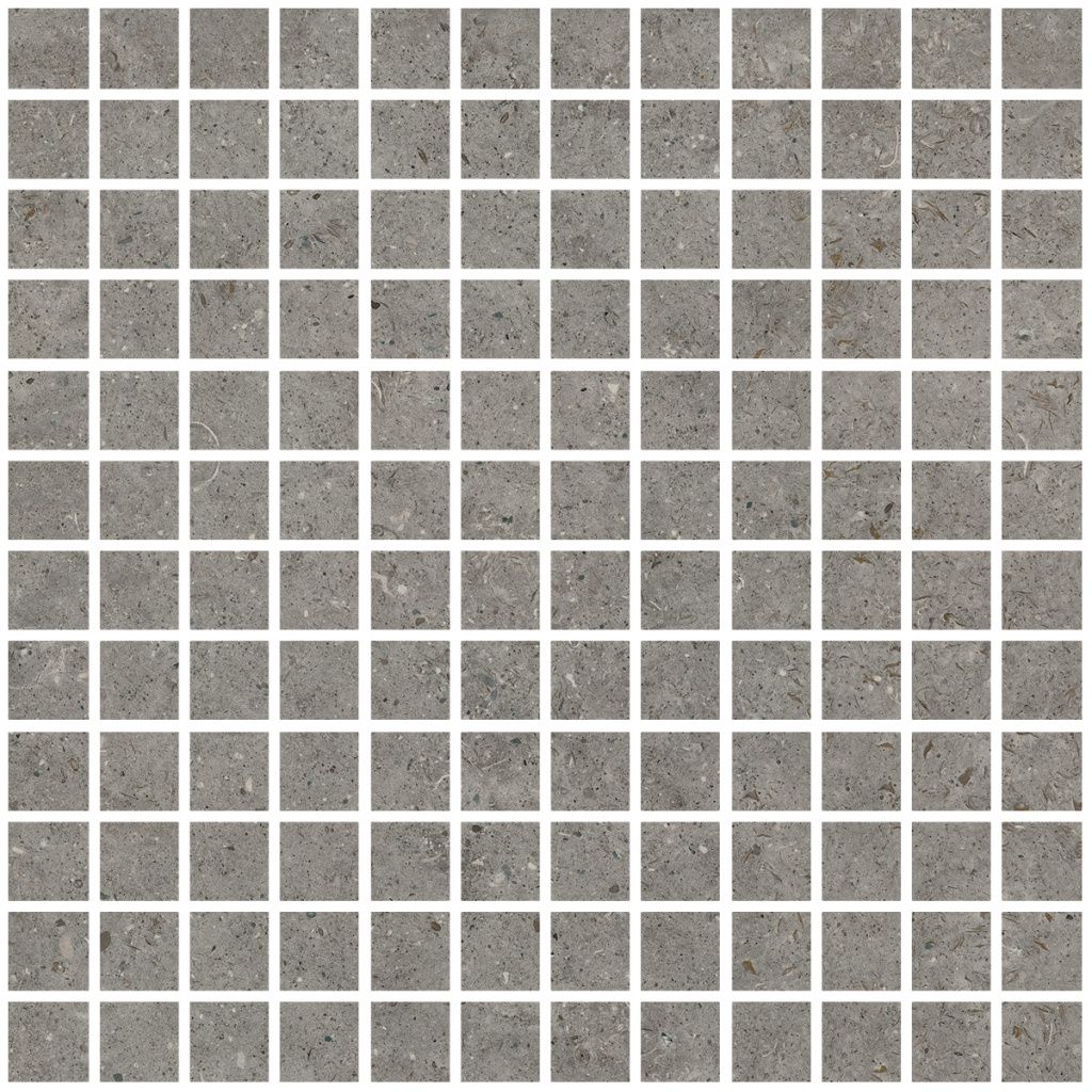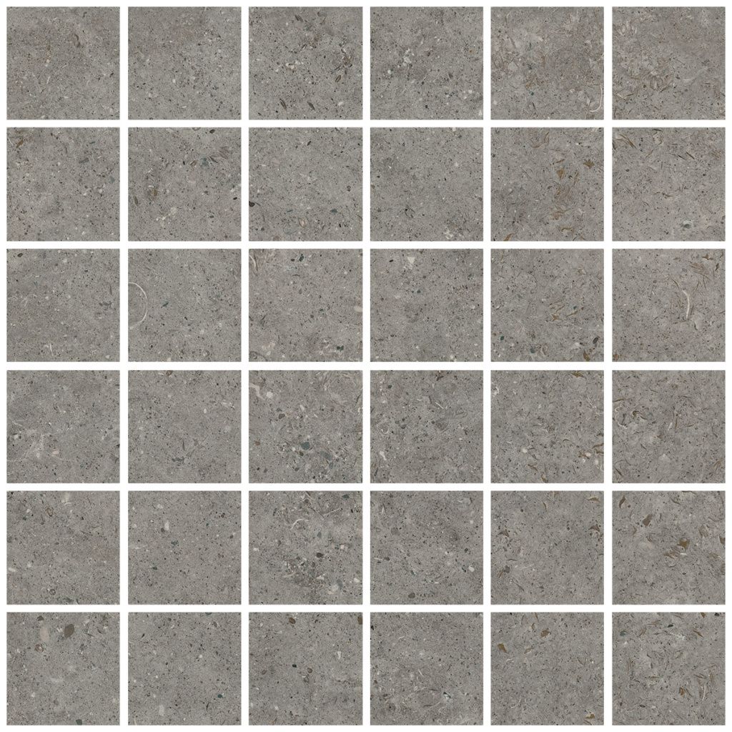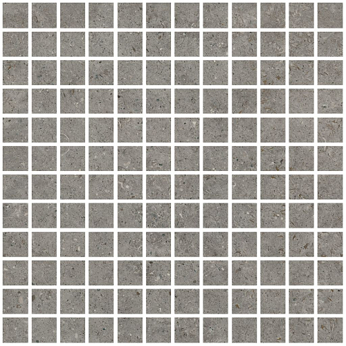 Плитка имеет матовую поверхность и однотонный серый цвет, который легко впишется в любой интерьер. Благодаря своей структуре, напоминающей мозаику, керамогранит создаёт эффект трёхмерности, придавая помещению уникальный и современный вид.