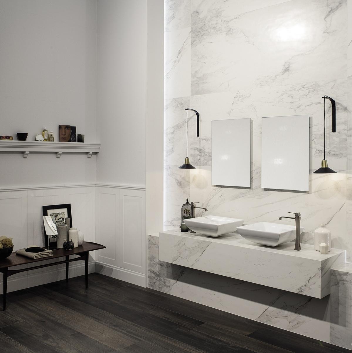 Коллекция Stones and More отличается неповторимым дизайном, вдохновлённым природой. Керамогранит Calacatta Smooth с его белым цветом и гладкой поверхностью станет прекрасным дополнением к любому интерьеру.
