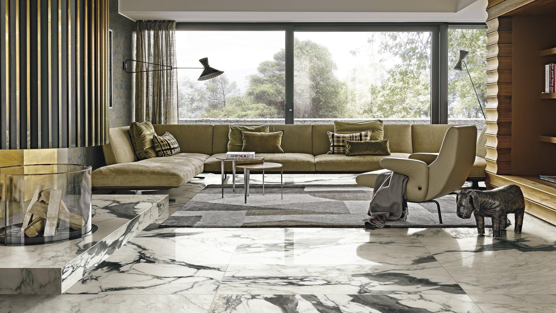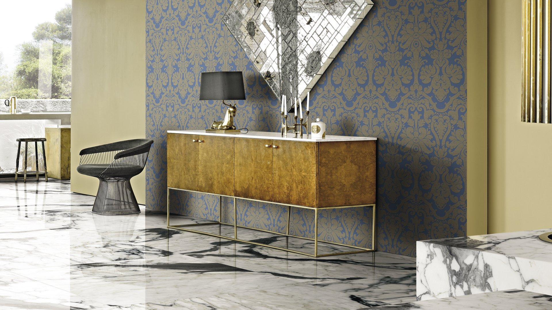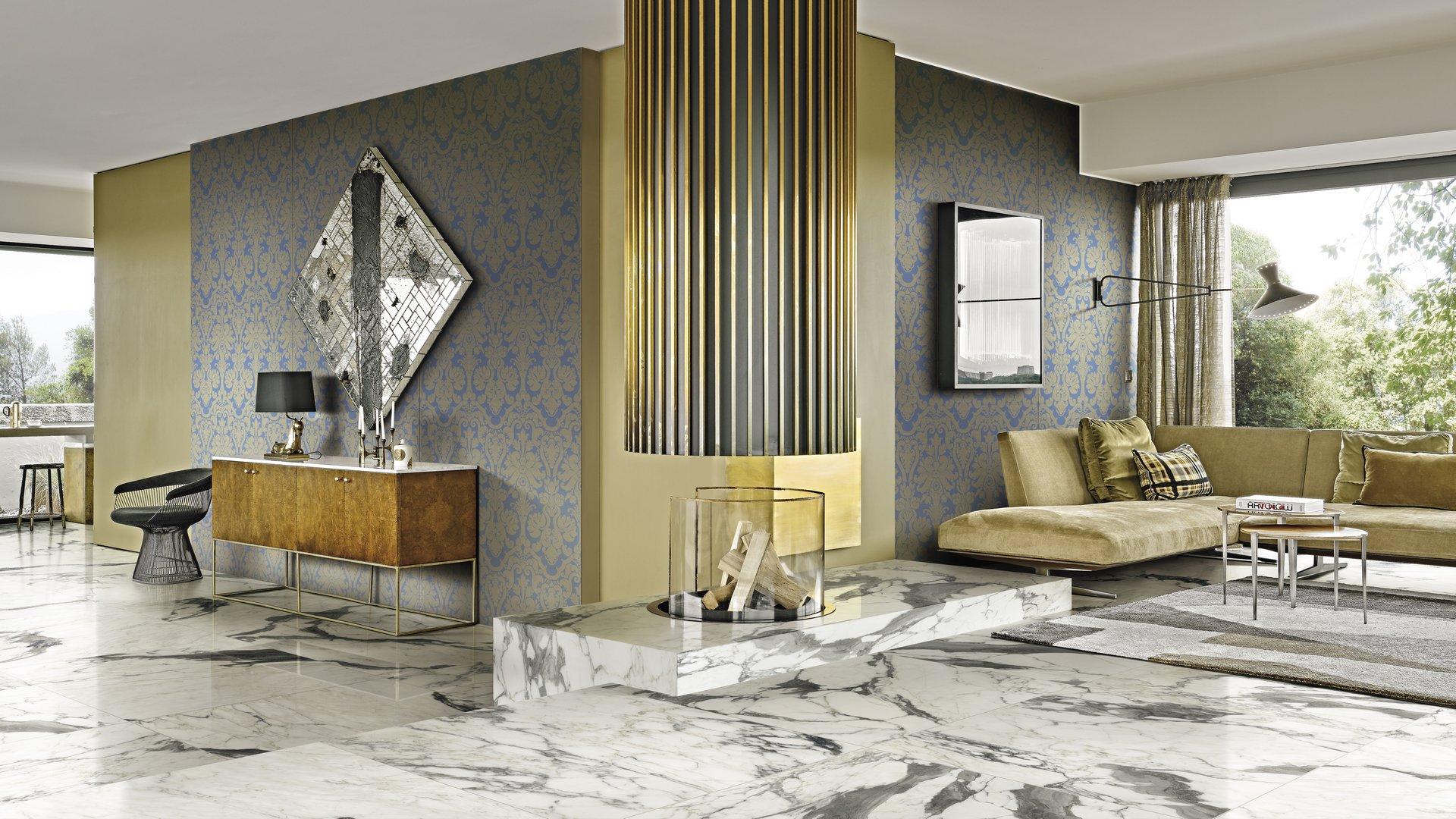 Керамогранит Calacata Altissimo Blanc Glossy имеет полированную поверхность, которая придаёт плитке блеск и изысканность. Благодаря своей структуре, плитка имитирует мрамор, что позволяет создать атмосферу утончённости и благородства.