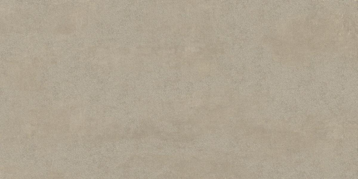 Керамогранит имеет крупный формат и прямоугольную форму, что позволяет создавать гармоничные и просторные композиции. Бежевый цвет с оттенком taupe sand (песочный с серым) придаёт помещению теплоту и уют. Толщина плитки — 6 мм, размер — 120x240 мм.