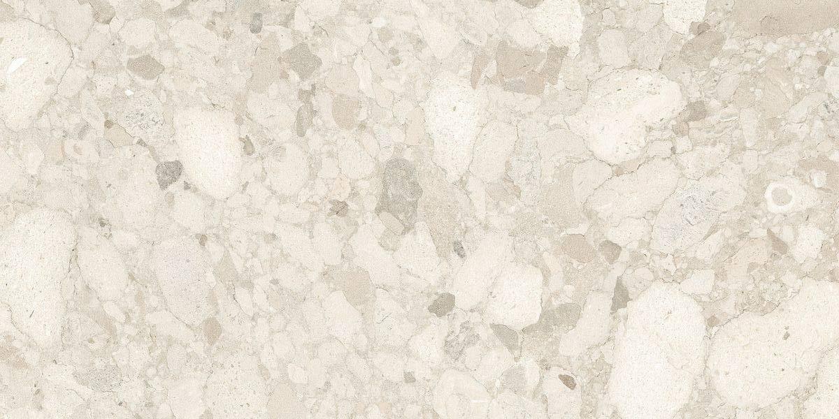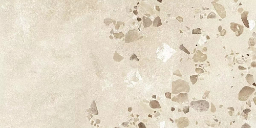 Керамогранит морозостойкий, что делает его подходящим для использования в помещениях с различными температурными условиями. Матовая поверхность плитки придаёт покрытию особую текстуру и глубину, а бежевый цвет с эффектом терраццо создаёт уютную и современную атмосферу.