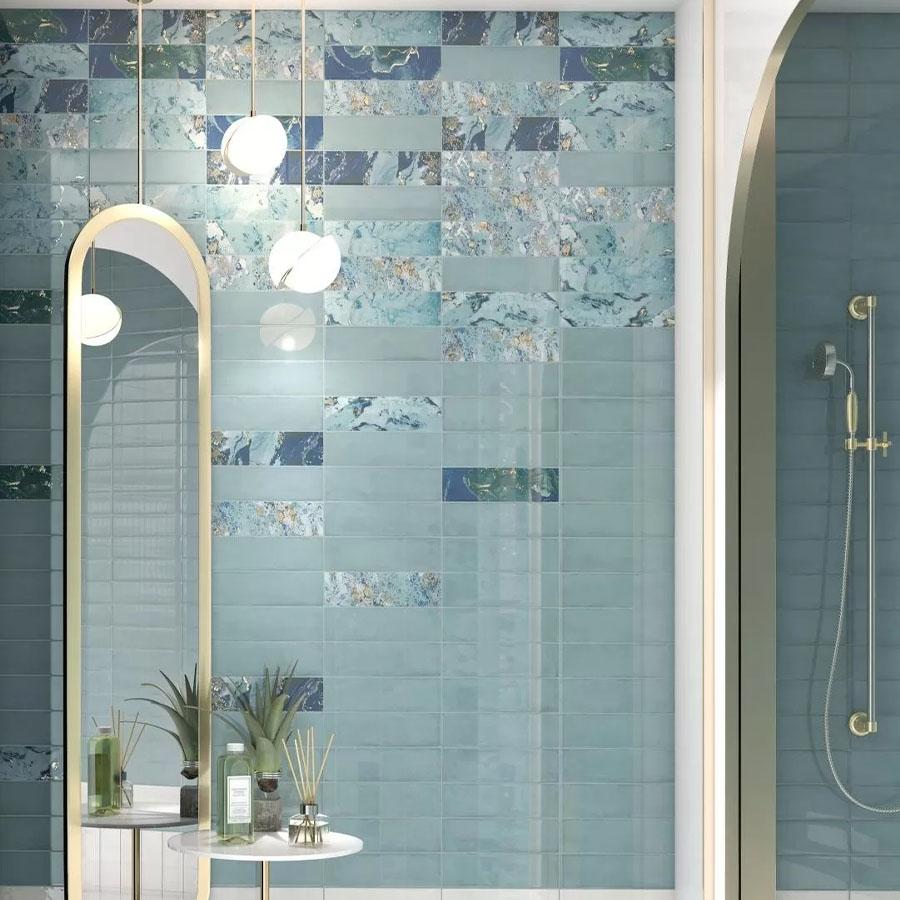 Коллекция Дарсена от Kerama Marazzi — это воплощение элегантности и утончённости. Голубой цвет плитки придаёт помещению свежесть и лёгкость.