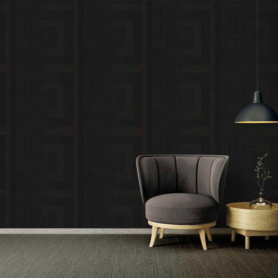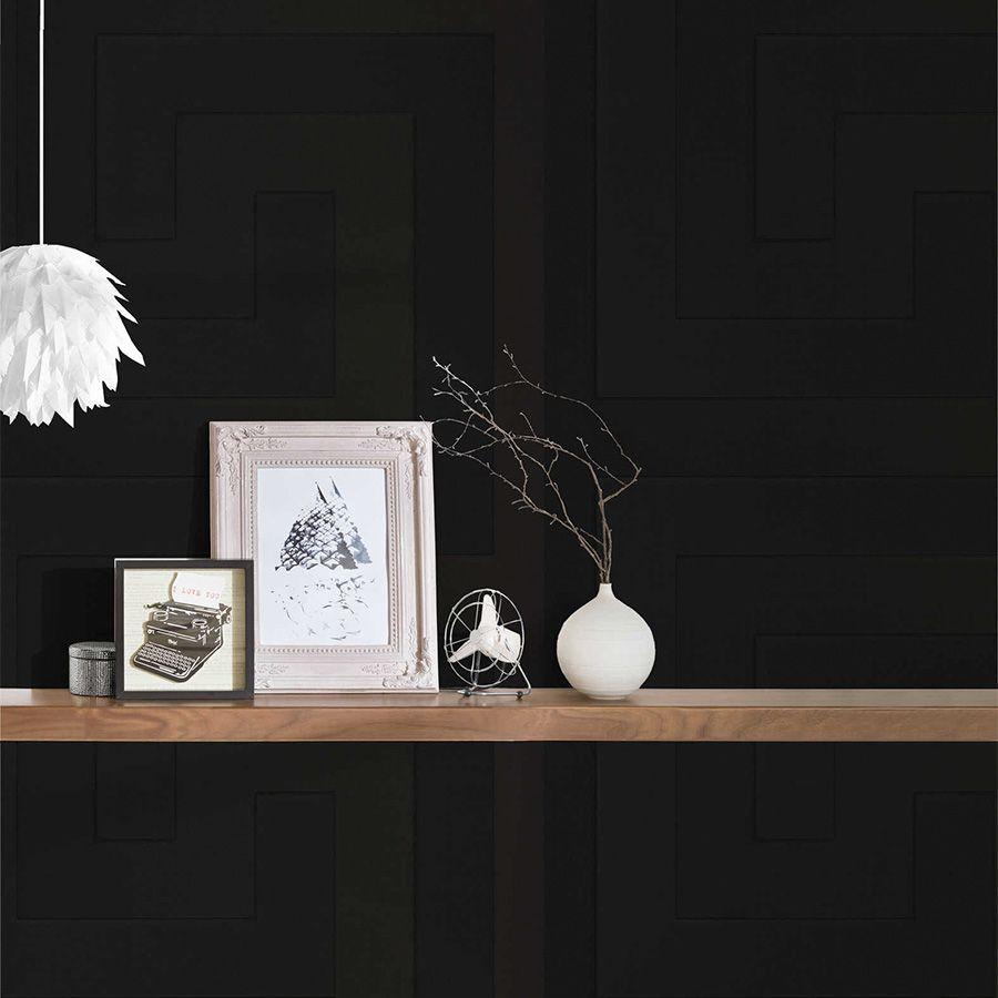 Дизайн обоев — геометрический, что придаёт интерьеру современный и динамичный вид. Чёрный цвет добавляет глубину и элегантность, делая эти обои идеальным выбором для создания стильного и выразительного интерьера.