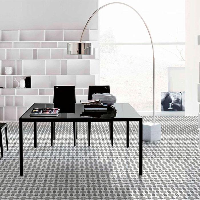Размер плитки 44,5 x 44,5 см делает её удобной для укладки, а квадратная форма гармонично впишется в любое пространство. Керамогранит метлахской текстуры с рисунком пэчворк создаёт ощущение ручной работы и придаёт полу уникальный вид.