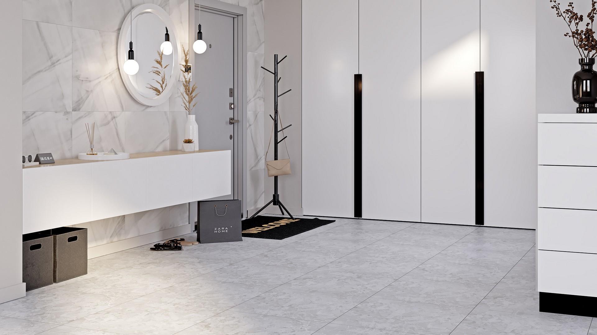 - Белый цвет керамогранита гармонично сочетается с различными стилями интерьера.
