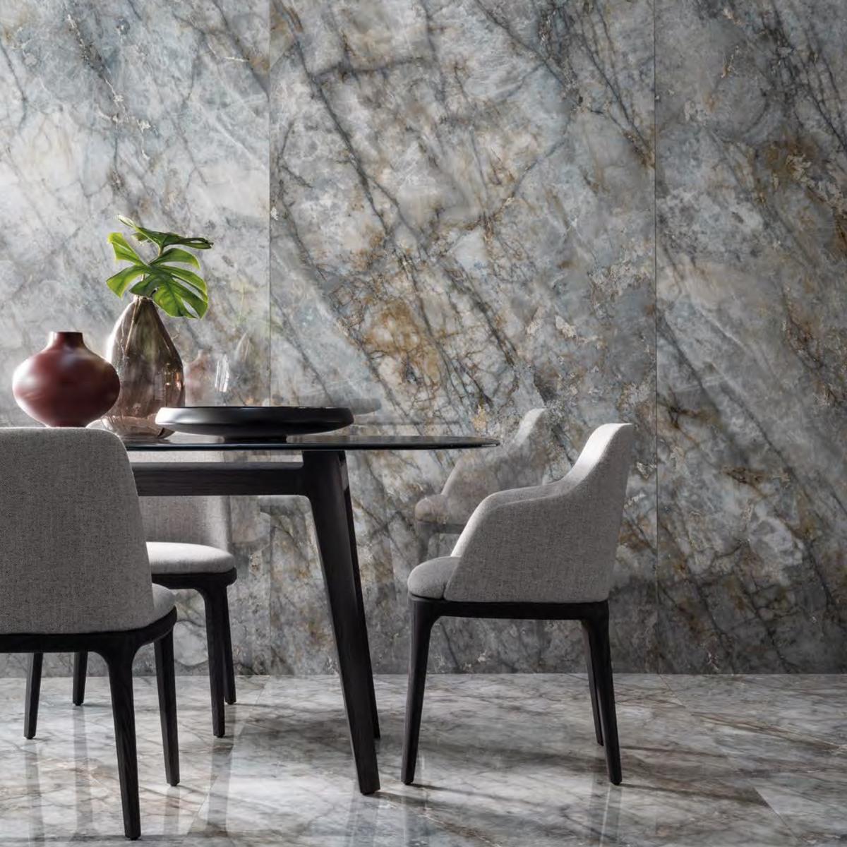 Керамогранит Tele Di Marmo Revolution Blu Ande Lappato 120x278 обладает высокой морозостойкостью, что делает его идеальным выбором для использования в помещениях с повышенной влажностью или на открытых террасах. Прямоугольная форма плитки позволяет легко и быстро укладывать её, создавая ровное и красивое покрытие.