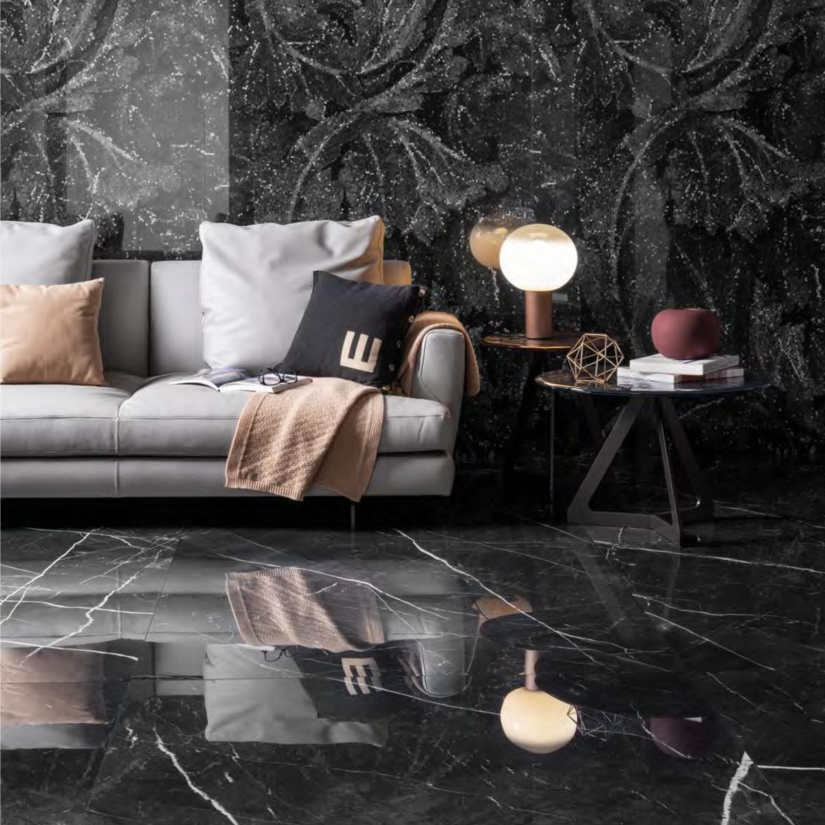 Керамогранит Calacatta Black Lappato имеет лаппатированную поверхность, которая придаёт плитке изысканный блеск и элегантность. Подчёркнутая текстура «под камень» создаёт ощущение натурального материала и придаёт интерьеру особый шарм.