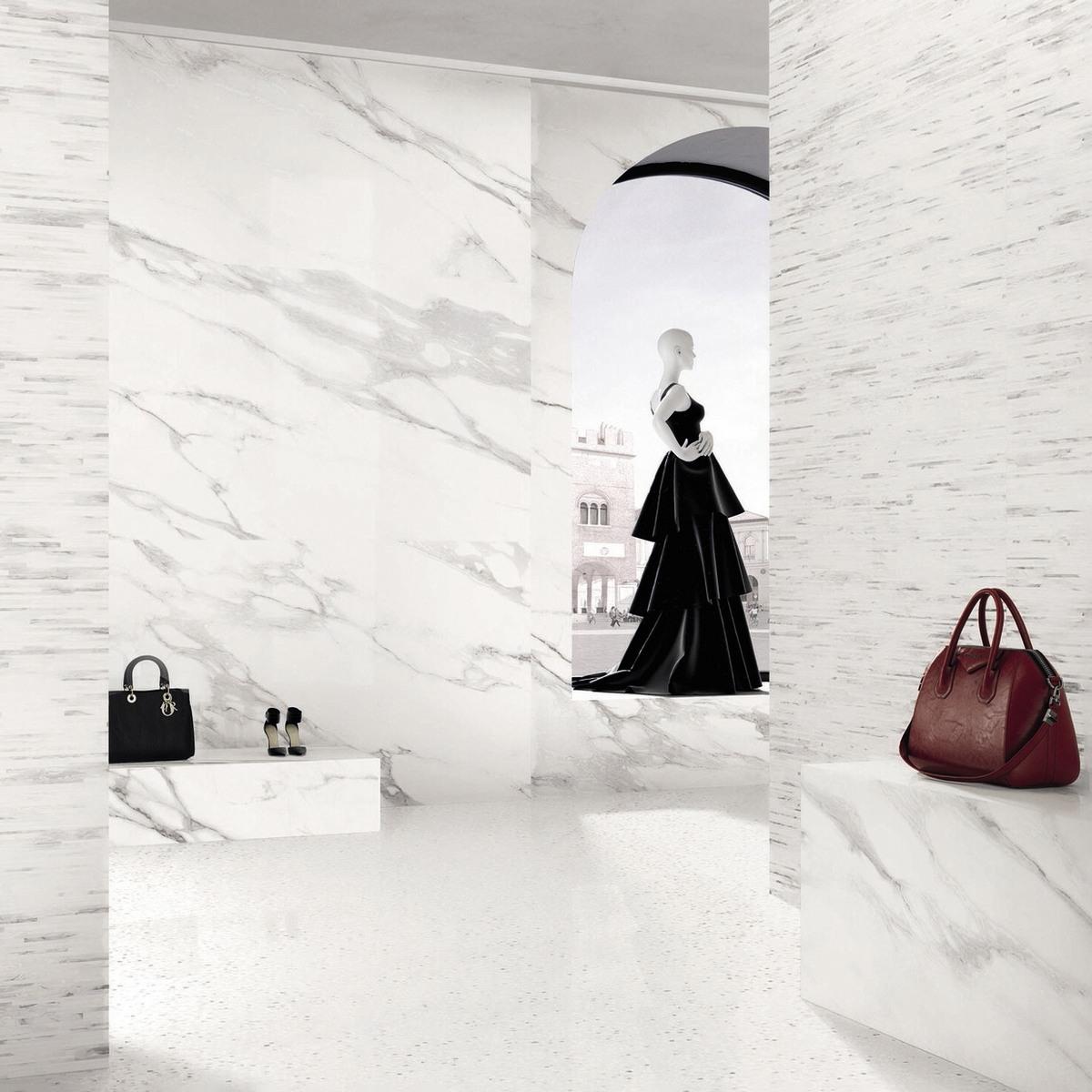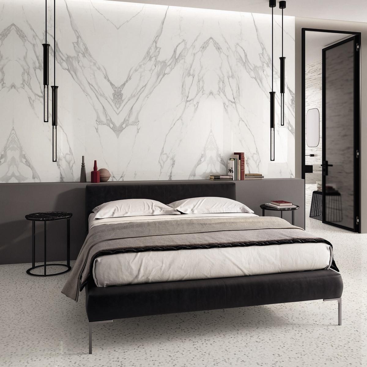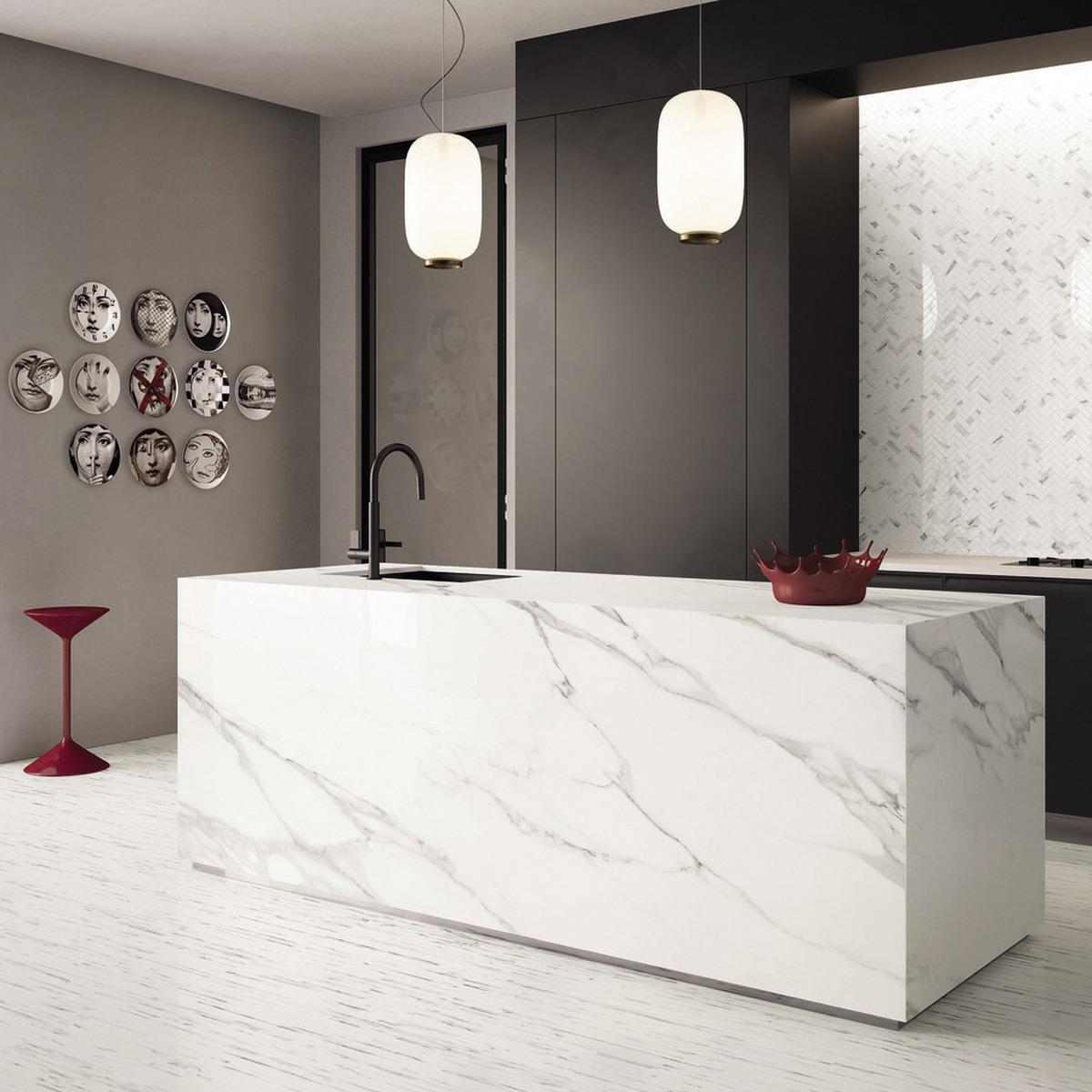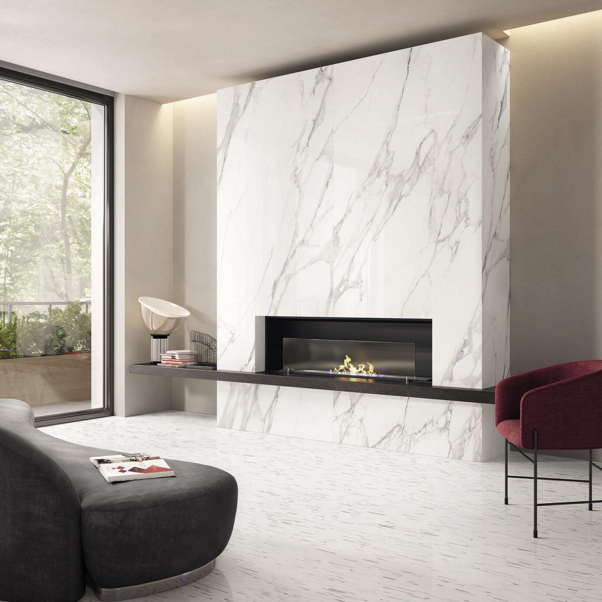 Керамогранит Statuario Michelangelo Lappato имеет лаппатированную поверхность, которая придаёт плитке особый блеск и элегантность. Белый цвет плитки добавит света и свежести в ваш интерьер.