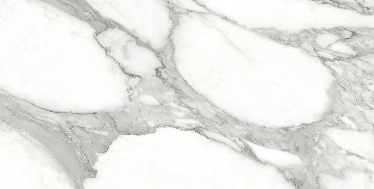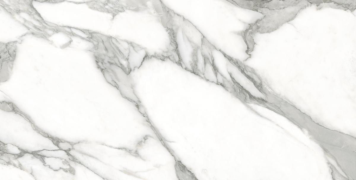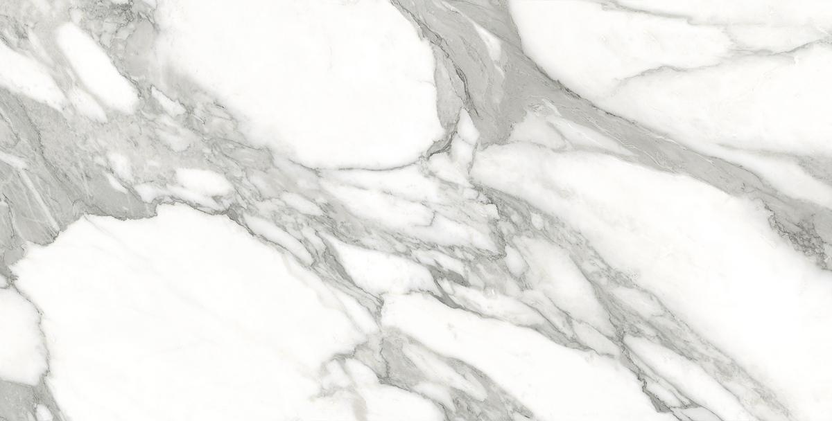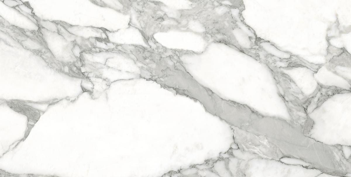 Плитка имеет прямоугольную форму и размер 60x120 см, что обеспечивает удобство монтажа и позволяет создавать гармоничные композиции. Керамогранит под камень имеет матовую поверхность белого цвета с природными мраморными узорами, что придаёт помещению особый шарм и элегантность.