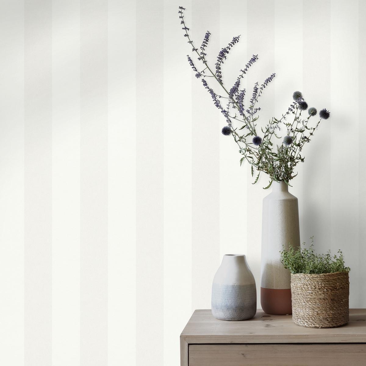 Обои из коллекции 4 Earth Melissa от производителя Erismann (Германия) выполнены в белом цвете и украшены полосками, что позволяет визуально расширить пространство и придать ему лёгкость. Благодаря флизелиновой основе обои легко клеить, они скрывают мелкие неровности стен, а после высыхания не требуют особого ухода.
