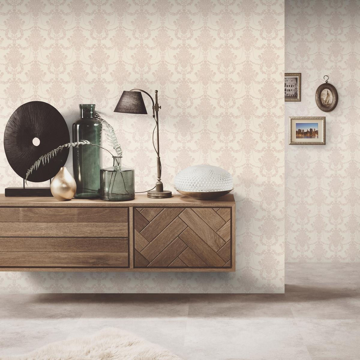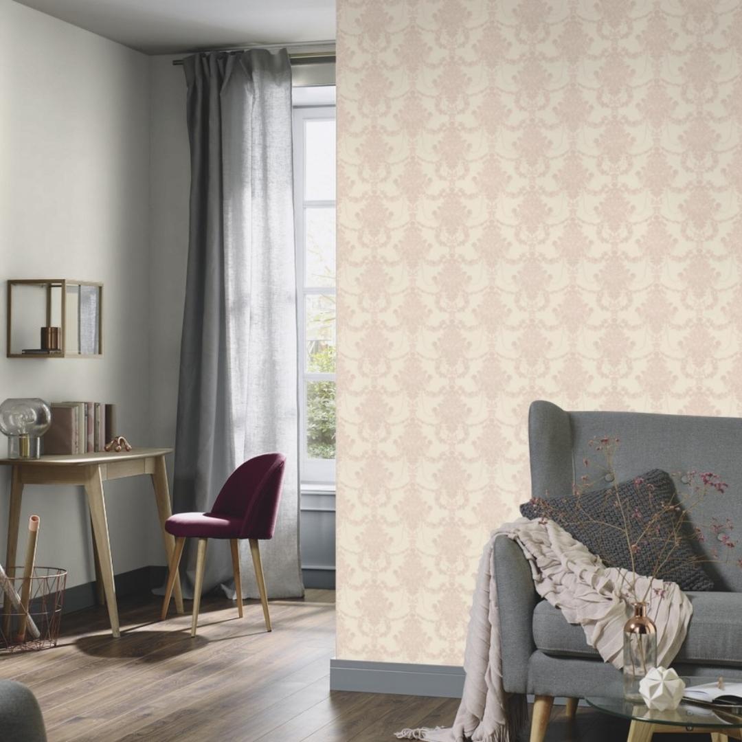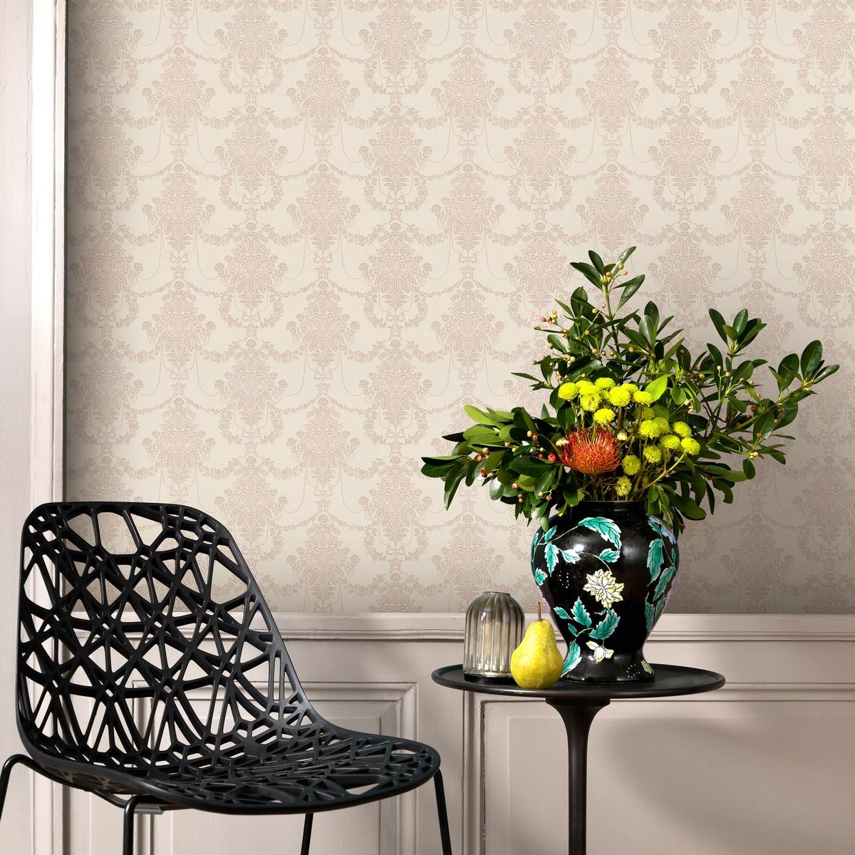 Дизайн обоев Versailles напоминает классический дамаск с персиковым оттенком. Это элегантное решение для любого помещения.