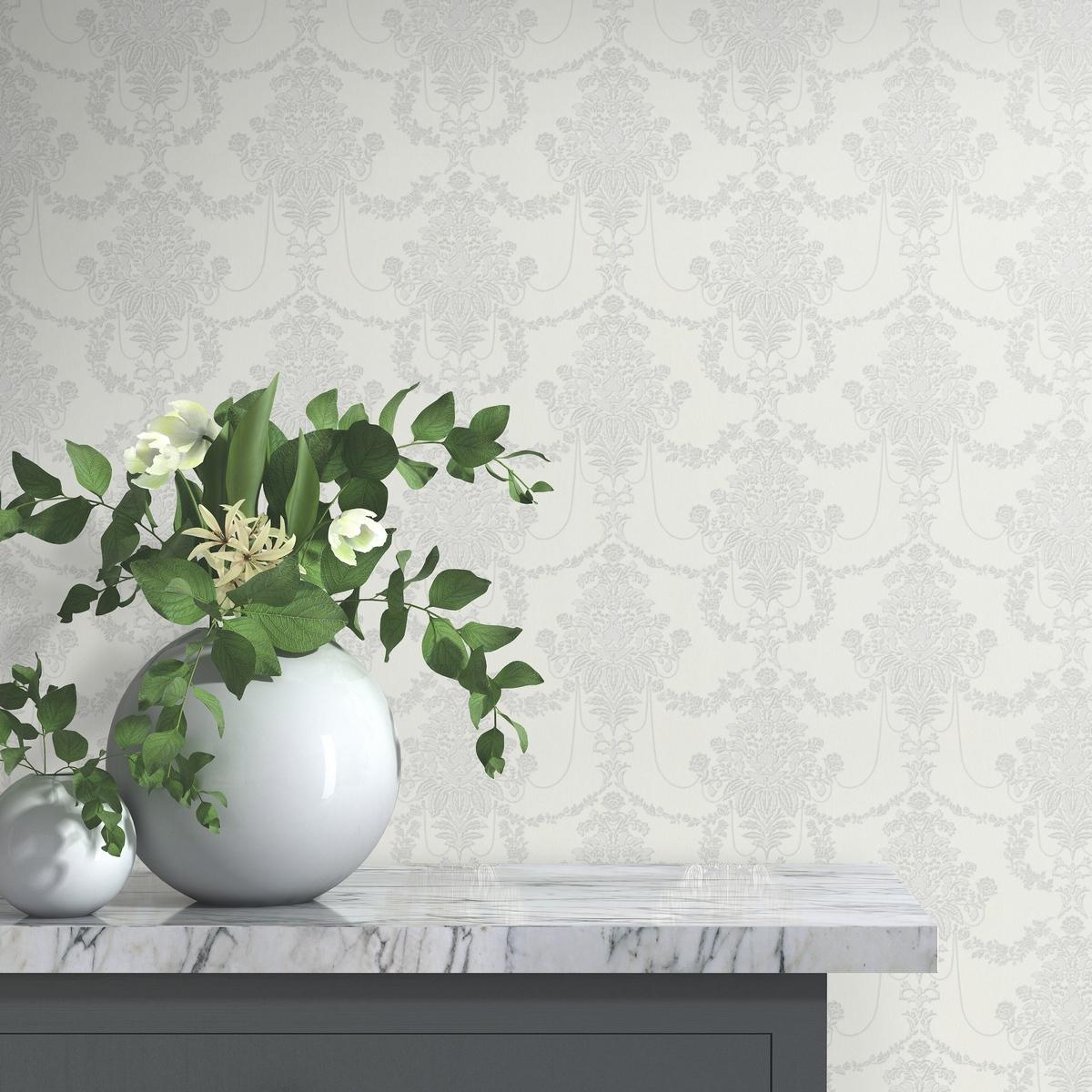 Цвет обоев — белый, что позволяет гармонично сочетать их с различными элементами интерьера. Они станут отличным выбором для гостиной, спальни или прихожей.