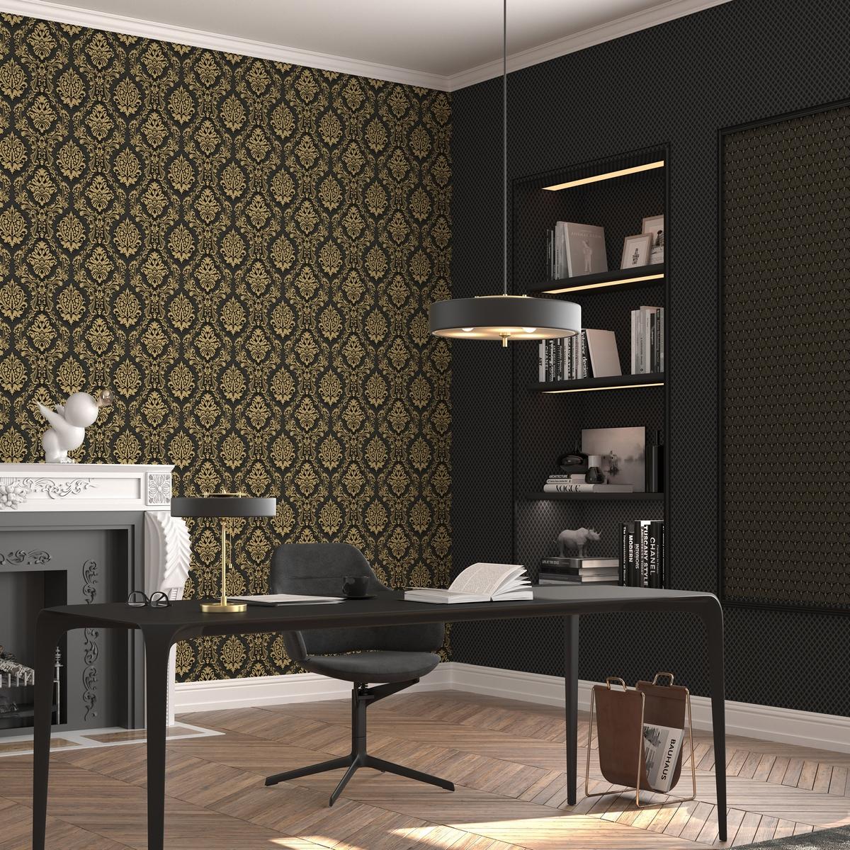 Обои Erismann Versailles станут стильным дополнением к вашему дому. Они подойдут для гостиной, спальни или прихожей. Обои представлены в чёрном цвете, который гармонично сочетается с различными оттенками мебели и декора.