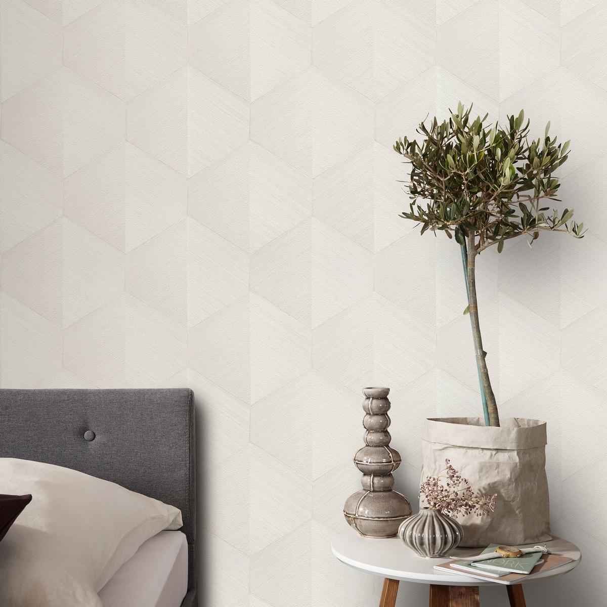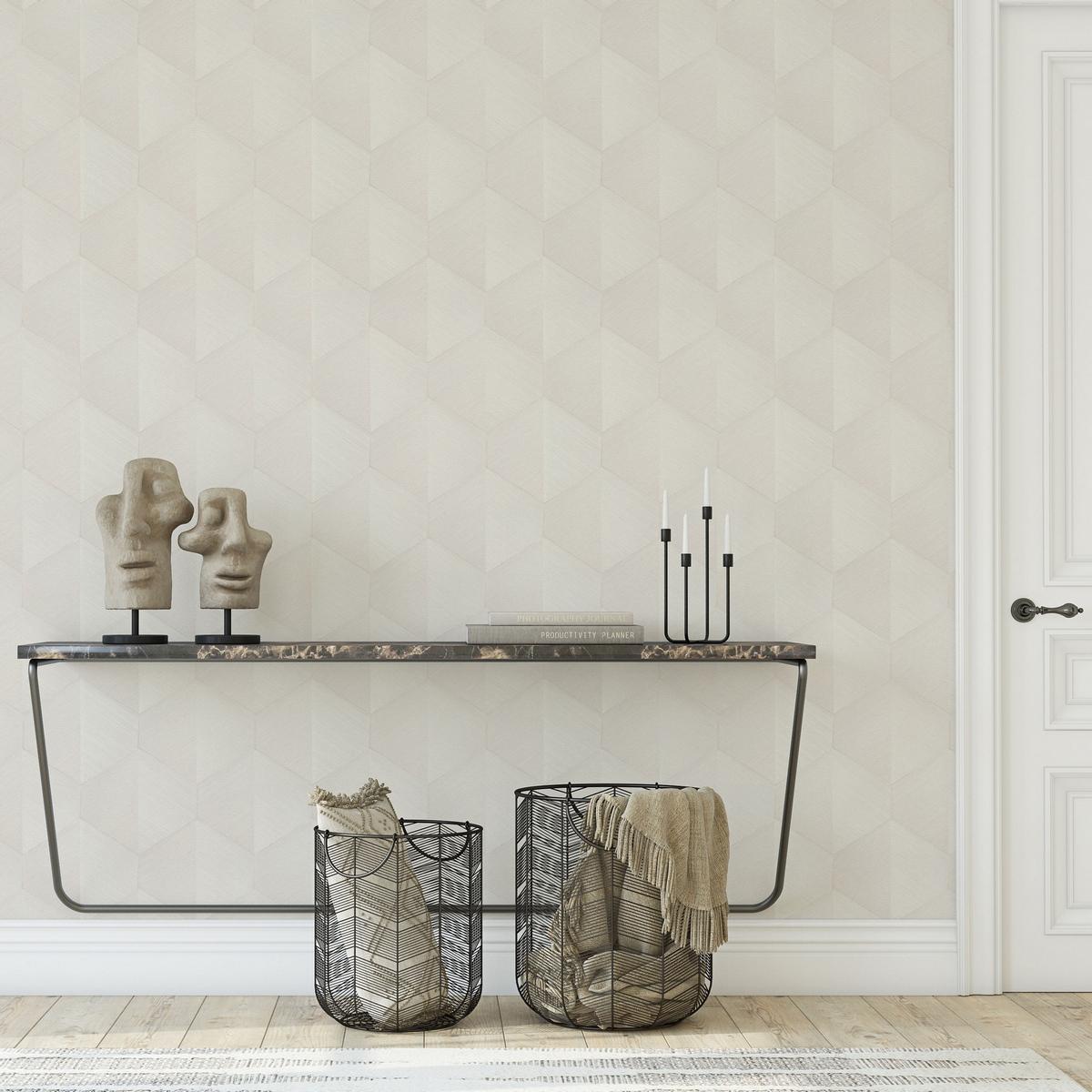 Обои имеют геометрический узор белого цвета, который подойдёт для любого интерьера. Они станут стильным и современным дополнением к вашему дому.