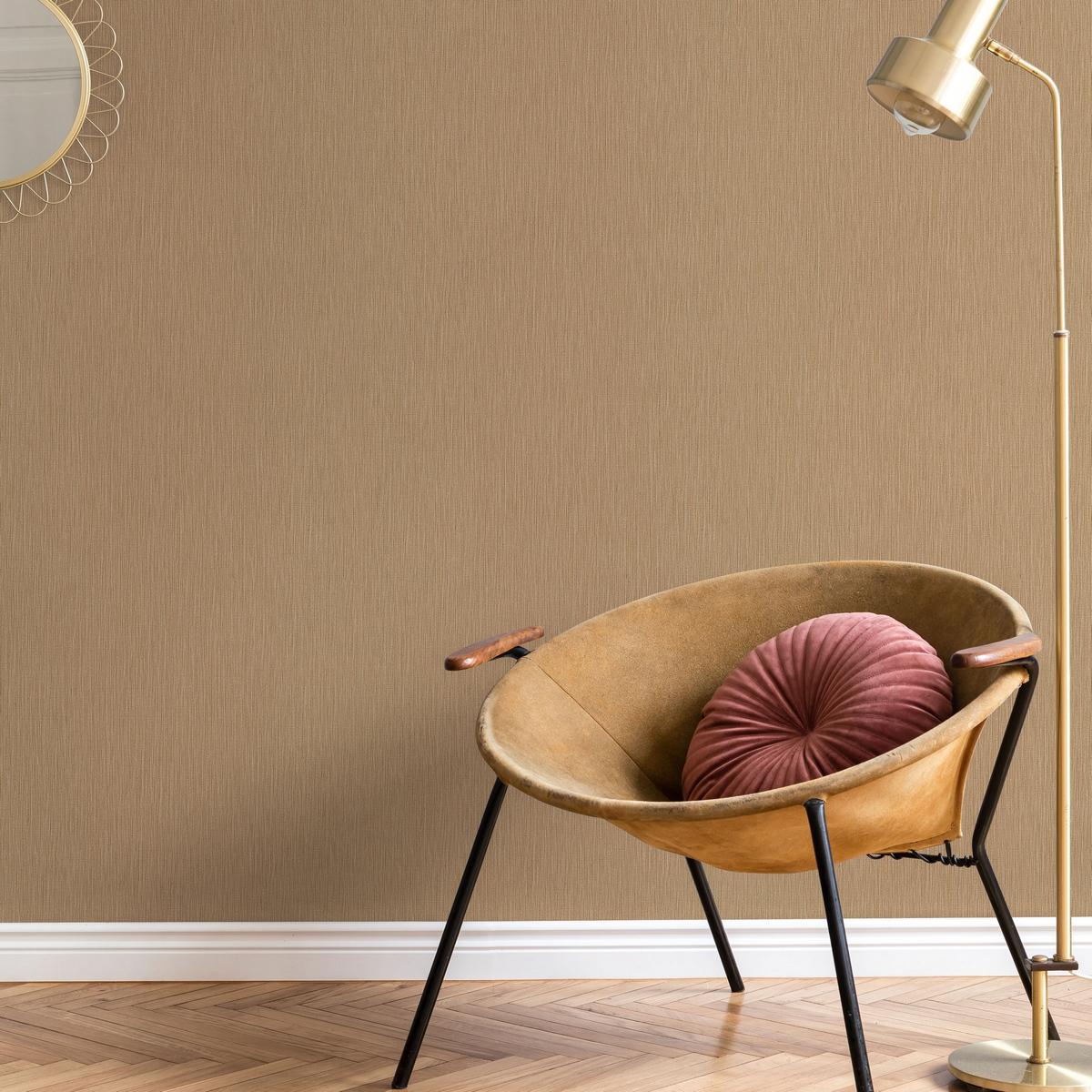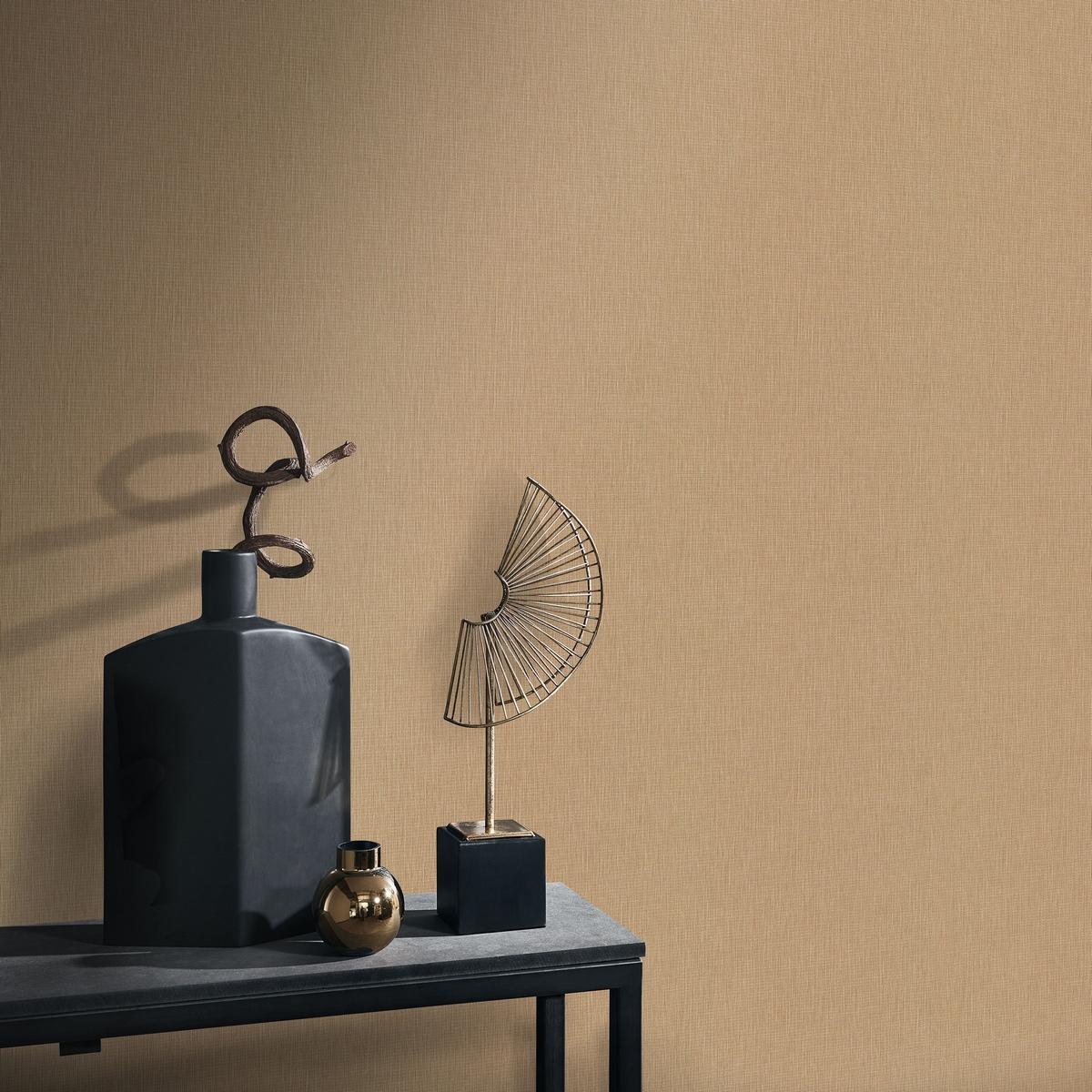 Однотонный дизайн обоев позволяет гармонично сочетать их с различными элементами интерьера. Золотистый цвет создаёт атмосферу тепла и уюта, а также визуально расширяет пространство.