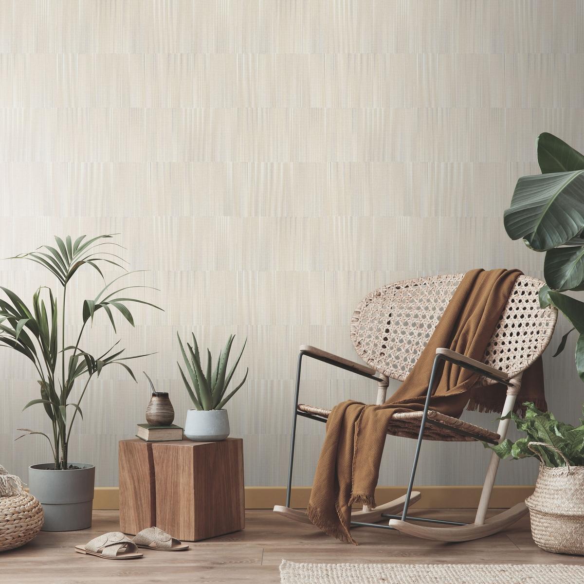 Дизайн обоев представляет собой элегантные бежевые полосы, которые гармонично впишутся в любой интерьер. Они станут отличным выбором для гостиной, спальни или прихожей.