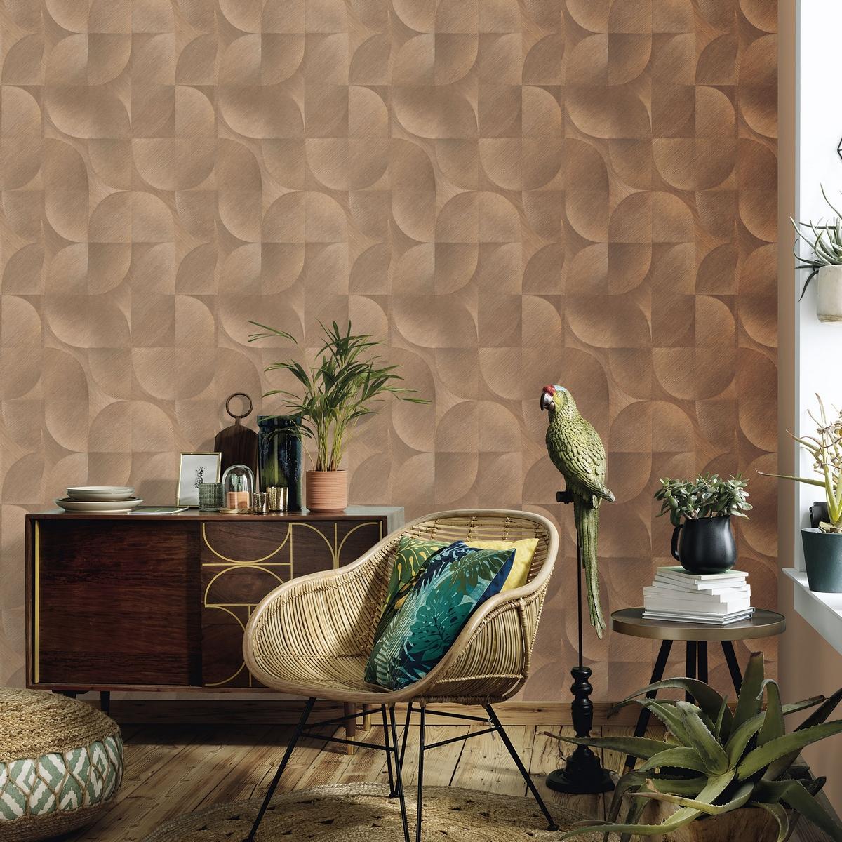 Обои имеют геометрический узор коричневого цвета, который гармонично впишется в любой интерьер. Они станут отличным выбором для тех, кто ценит практичность и красоту.